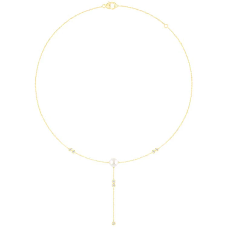 0.15ct Lab Grown Diamond Freshwater Pearl Necklace in 9K Yellow Gold