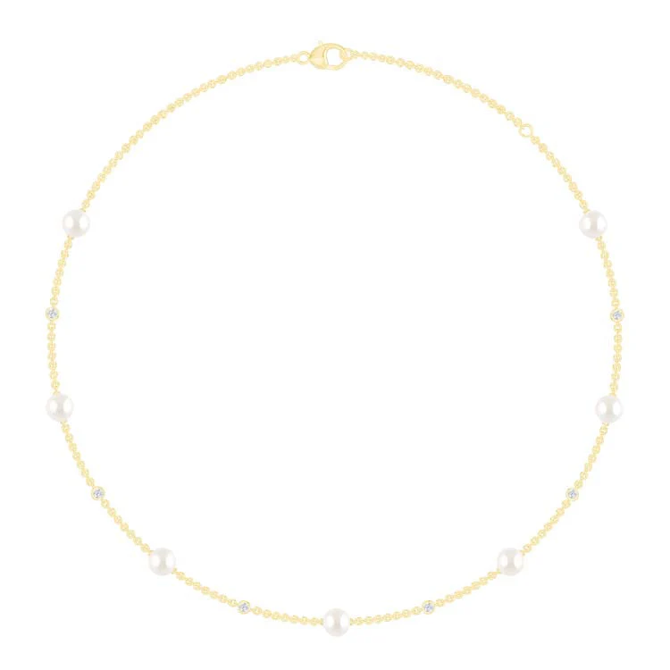0.21ct Lab Grown Diamond Freshwater Pearl Necklace in 9K Yellow Gold