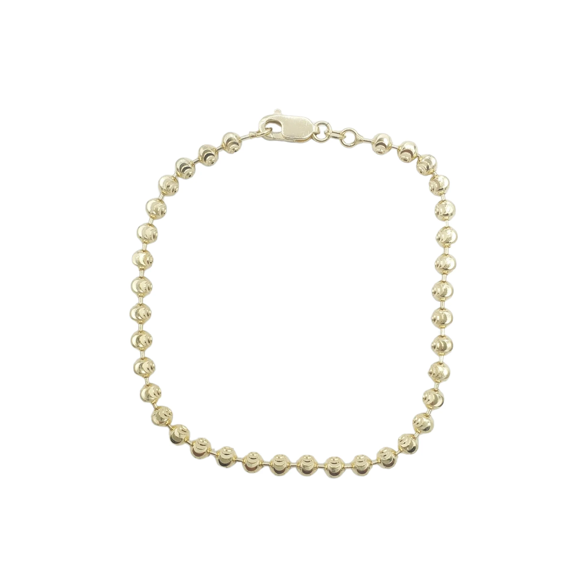 Brighten up your day with this 10K Gold Moon Cut Bead Bracelet. Handcrafted to perfection, this piece brings a fresh spin to the classic bead bracelet with its distinctive moon cut design, creating an elegant shimmer. It strikes the perfect balance between durability and comfort, offering various widths for a tailored fit. Each bracelet measures 8 inches, an ideal length for a snug fit around your wrist.