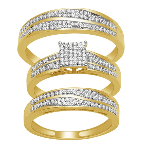 This trio set is a blend of modern design and classic beauty, ideal for couples who appreciate elegance in their union.