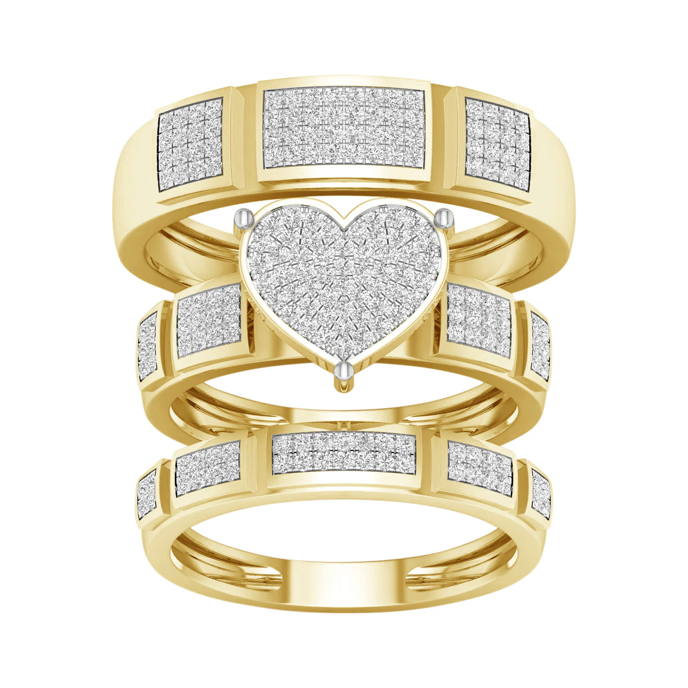 10K Yellow Gold 0.50CT Diamond Wedding Ring Trio-Set