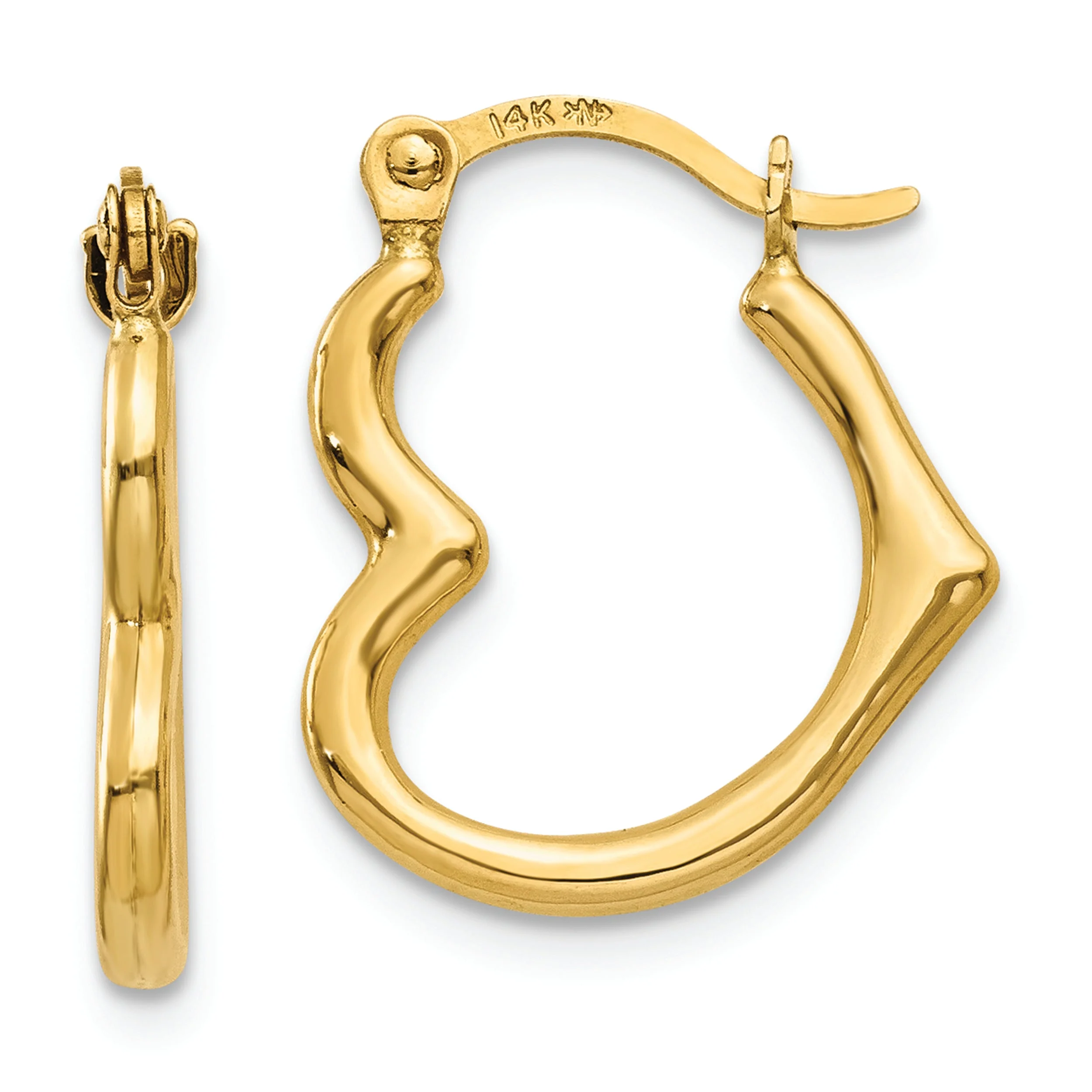 14K Heart Shaped Hollow Hoop Earrings