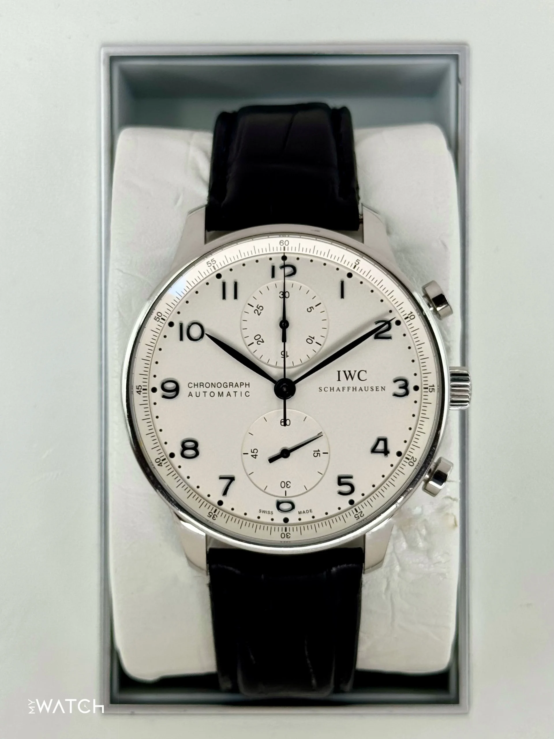 2010 IWC Portuguese Chronograph 41mm IW371417 Stainless Steel White Dial