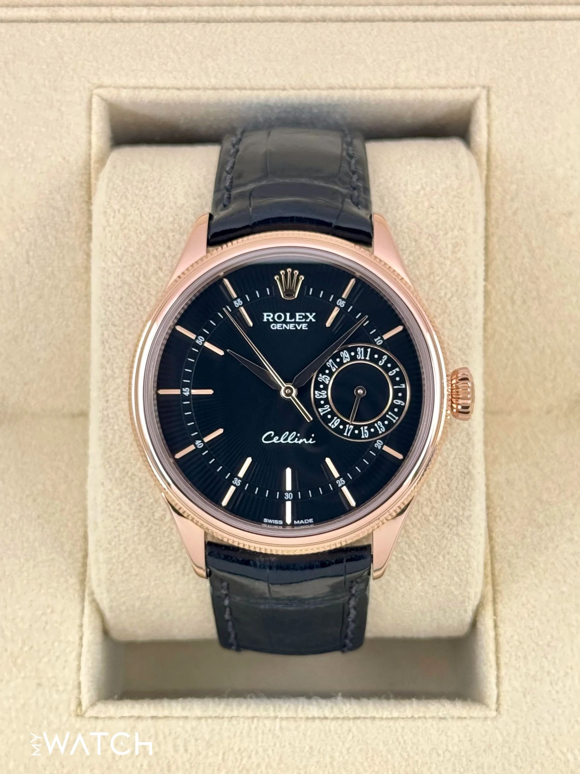 2014 Rolex Cellini Date 39mm 50515 Everose Gold Black Guilloche Dial