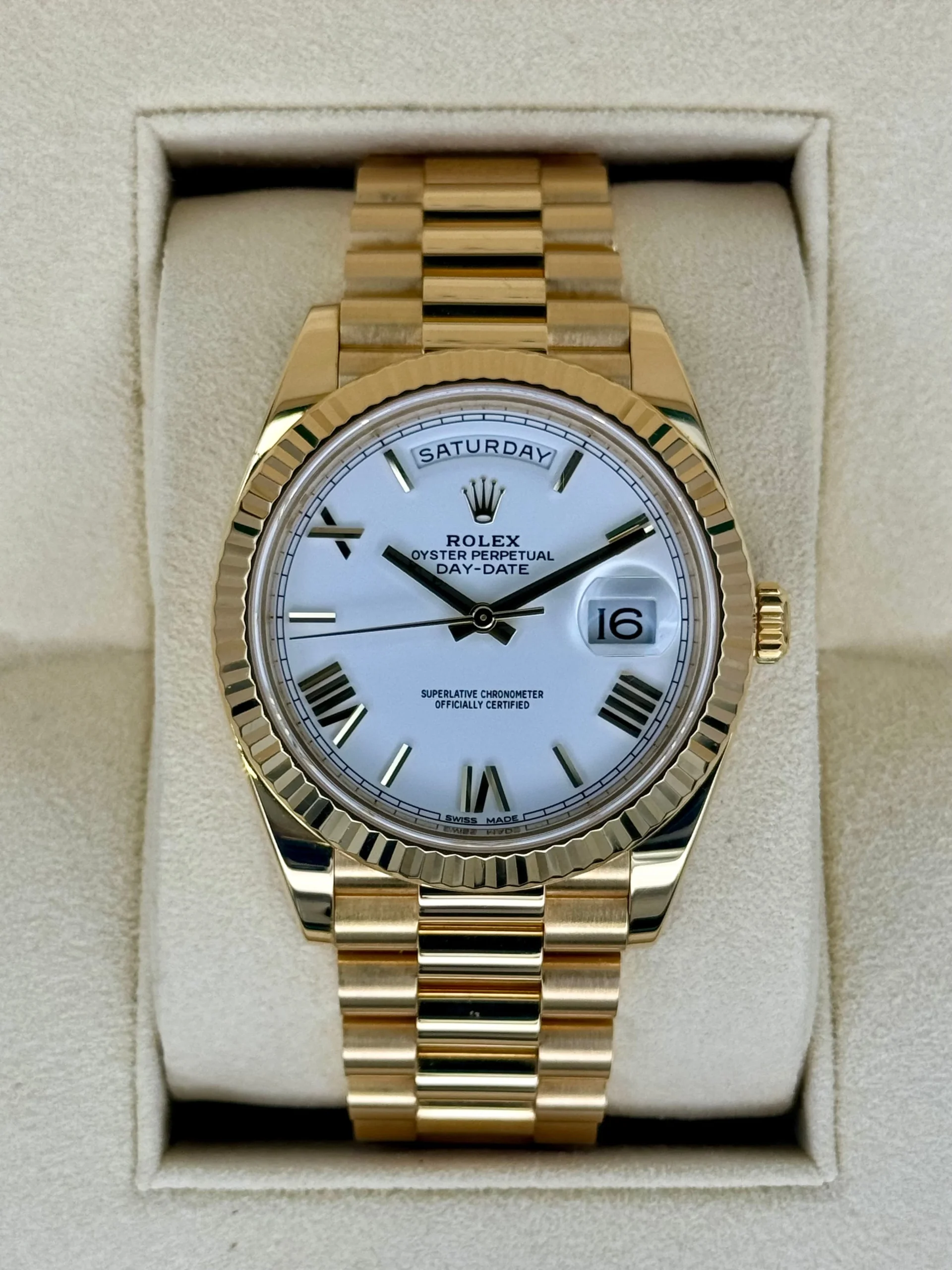 2019 Rolex Day-Date 40mm 228238 Presidential 18kt Yellow Gold White Dial