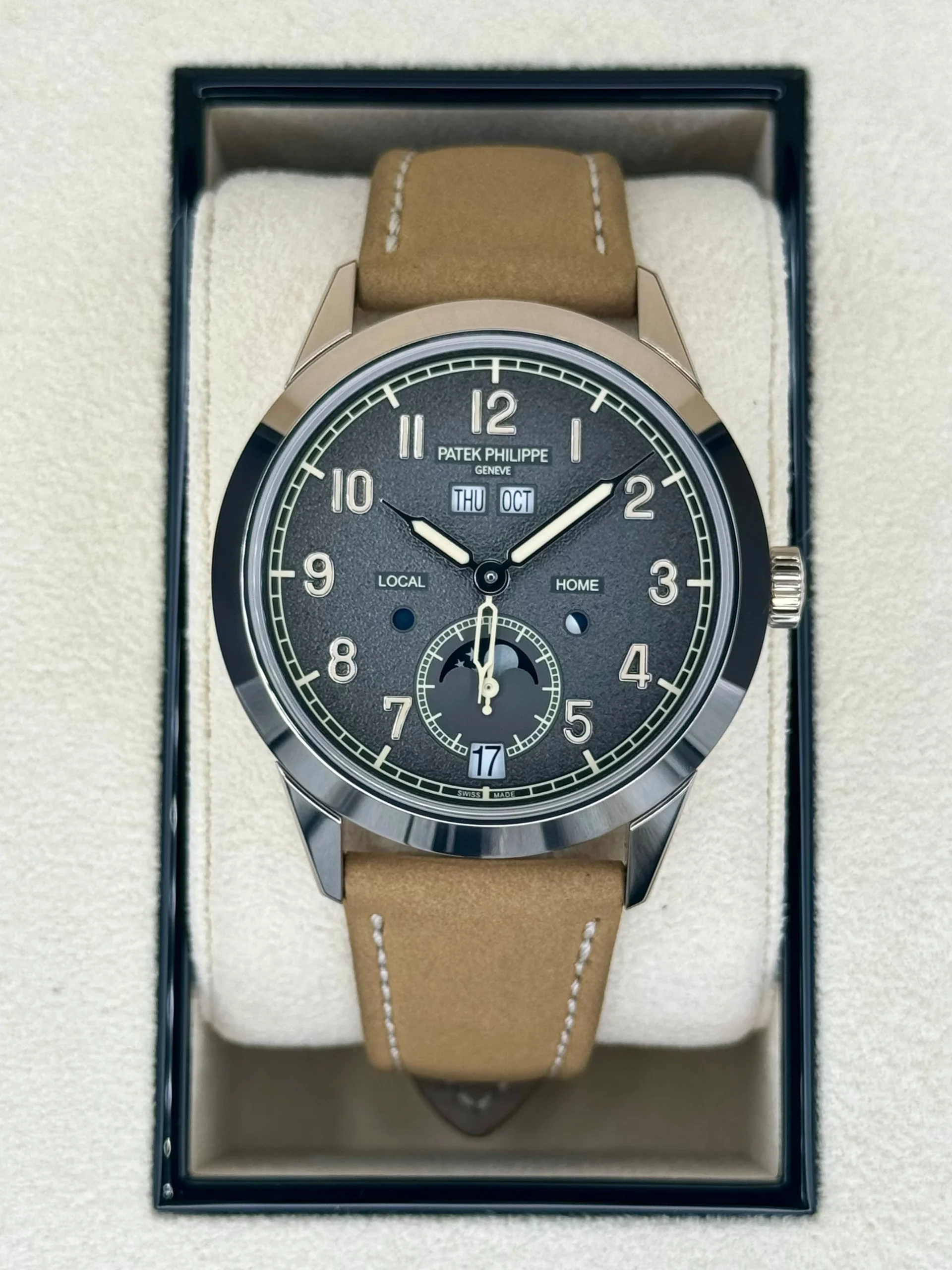 2022 Patek Philippe Annual Calendar Travel Time Complications 42mm 5326G-001 White Gold Charcoal Gray Dial