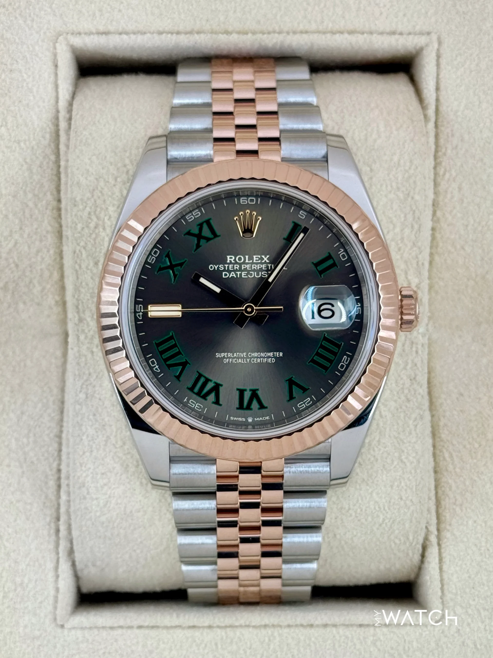 2022 Rolex Datejust 41mm 126331 Two-Tone Oystersteel and Everose Gold Jubilee Bracelet and Wimbledon Dial