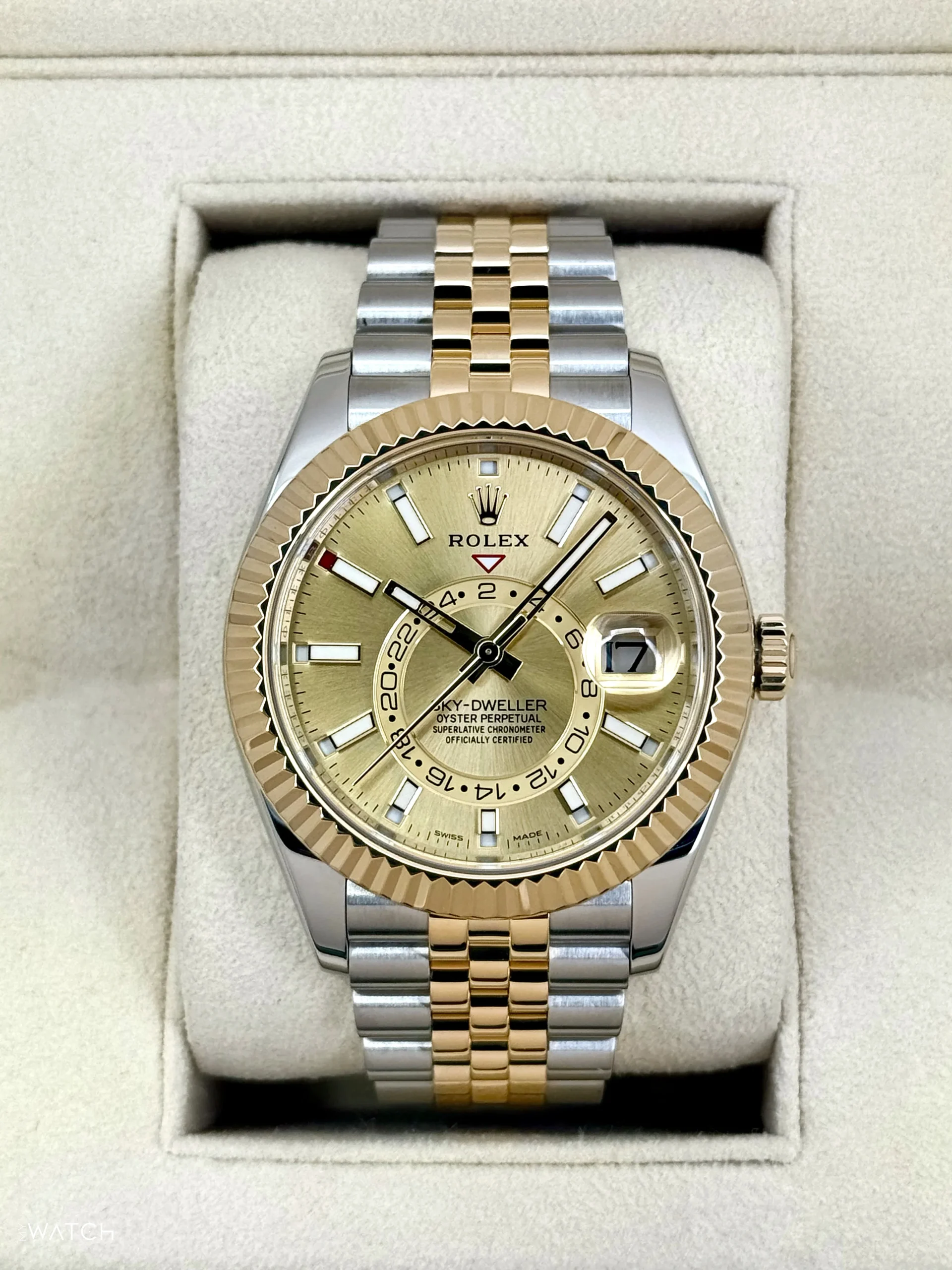 2022 Rolex Sky-Dweller 42mm 326933 Two-Tone “Yellow Rolesor” Oystersteel and Yellow Gold Jubilee Bracelet Champagne Dial
