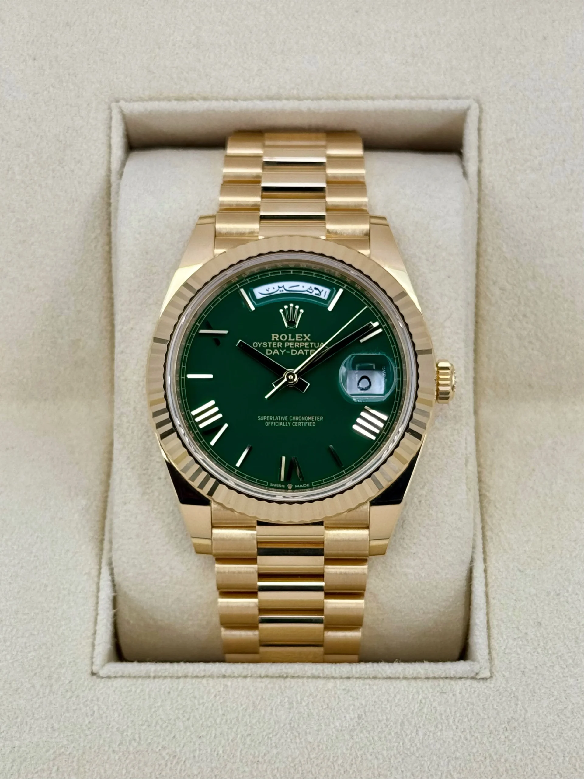 2023 Rolex Day-Date 40mm 228238 Arabic Calendar Green Dial