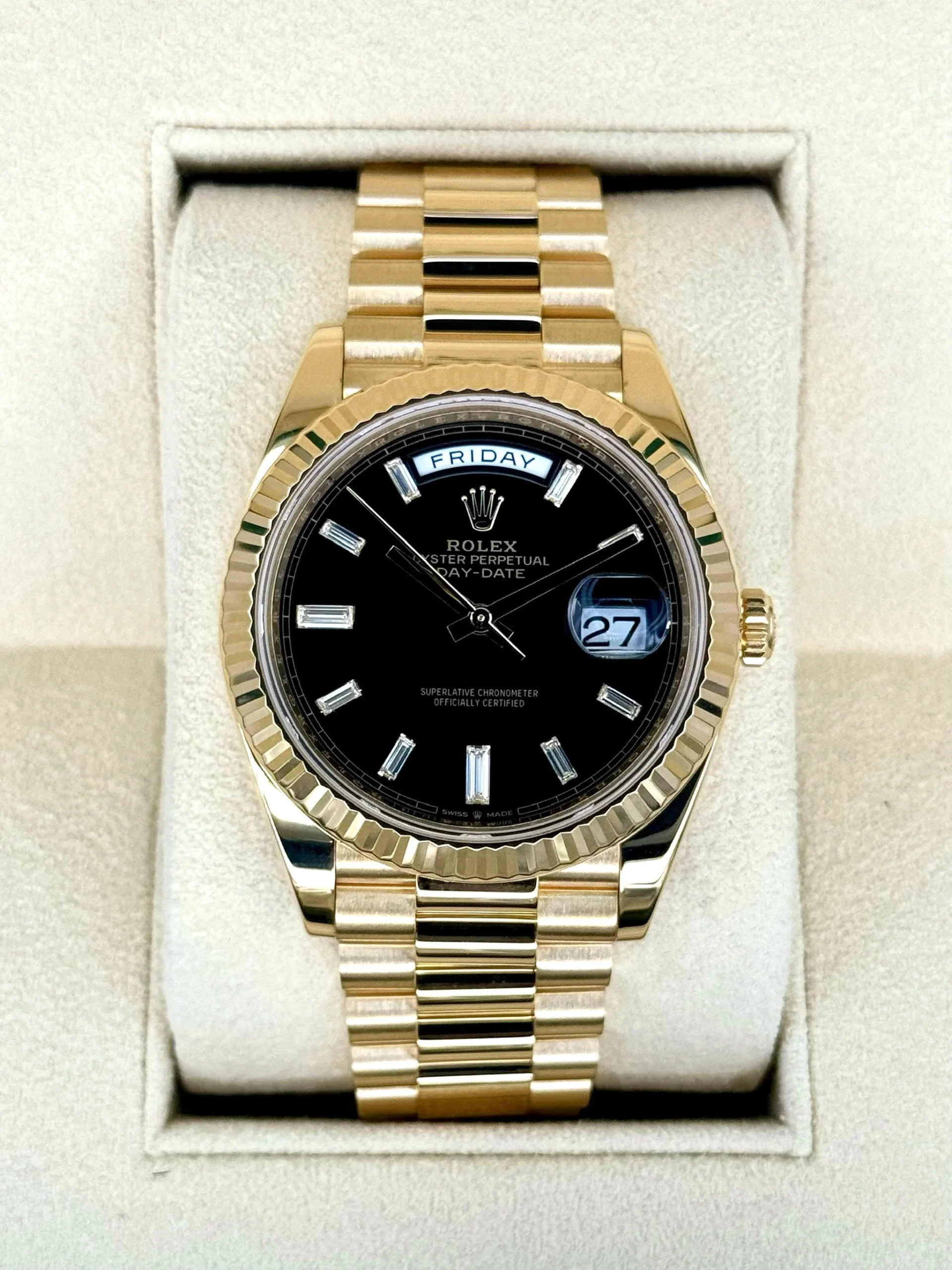 2023 Rolex Day-Date 40mm 228238 Black Diamond Baguette Dial