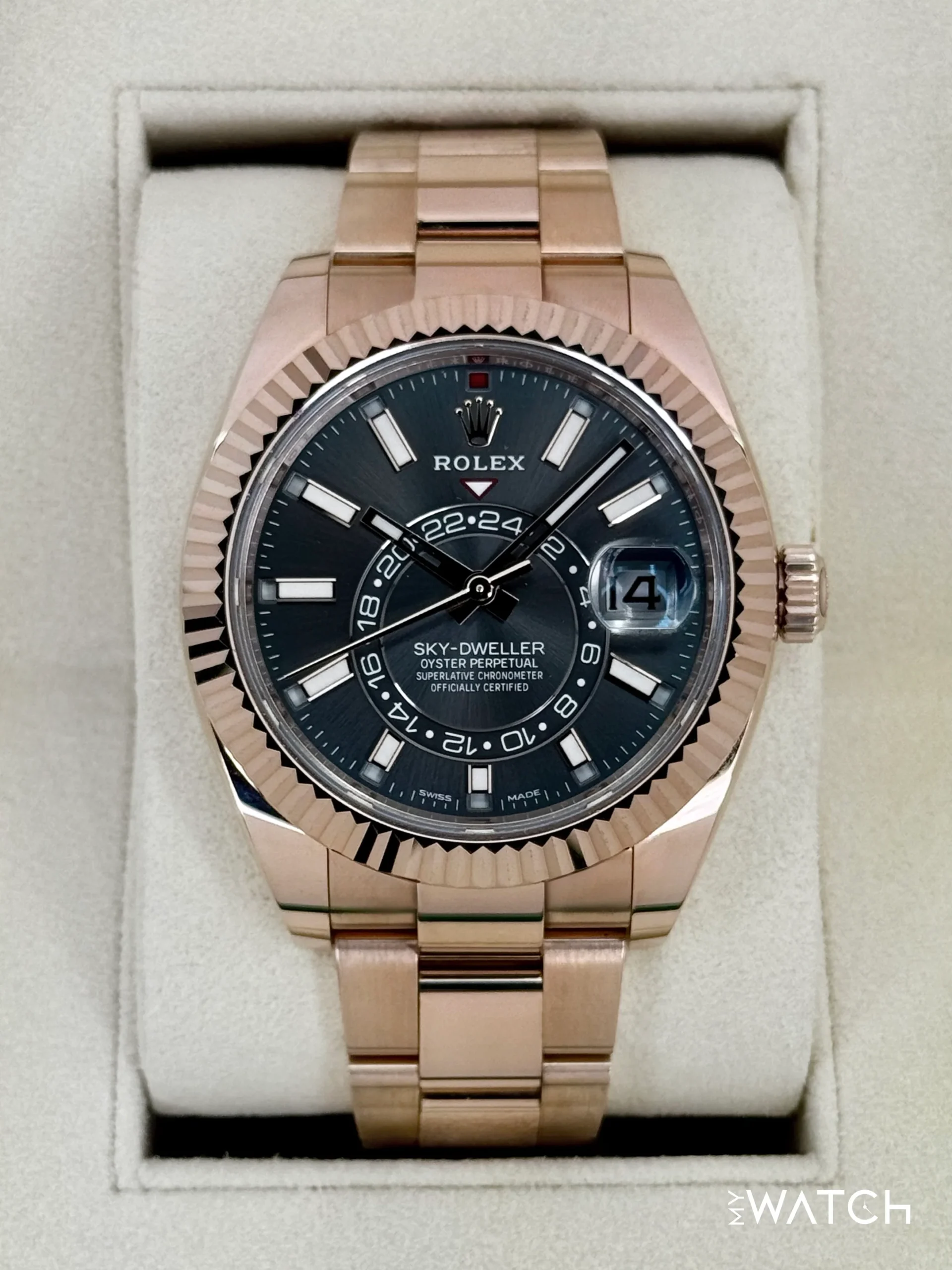 2023 Rolex Sky-Dweller 42mm 326935 Everose Gold with Oyster Bracelet and Rhodium Dial