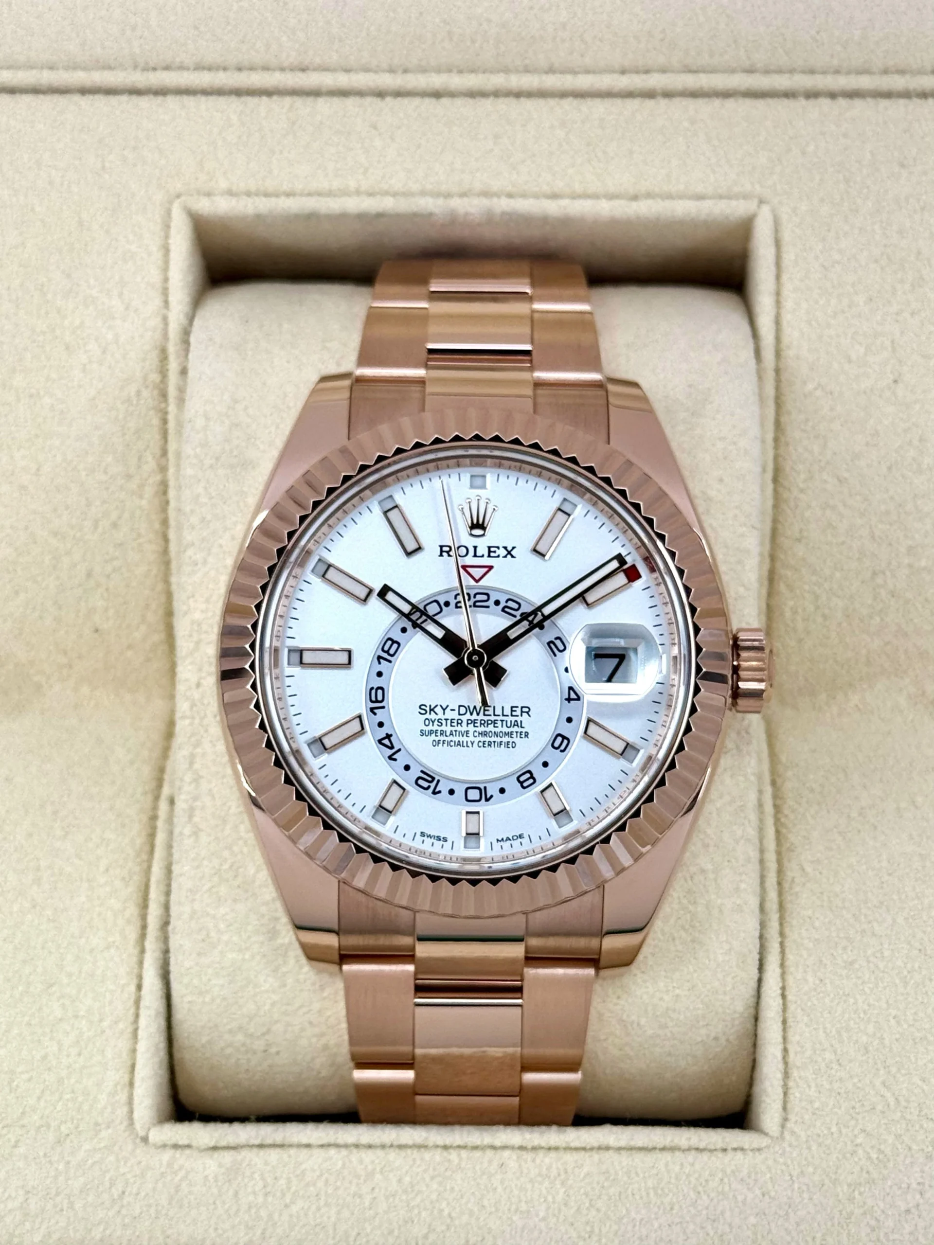 2023 Rolex Sky-Dweller 42mm 326935 Everose Gold Oyster Bracelet White Dial