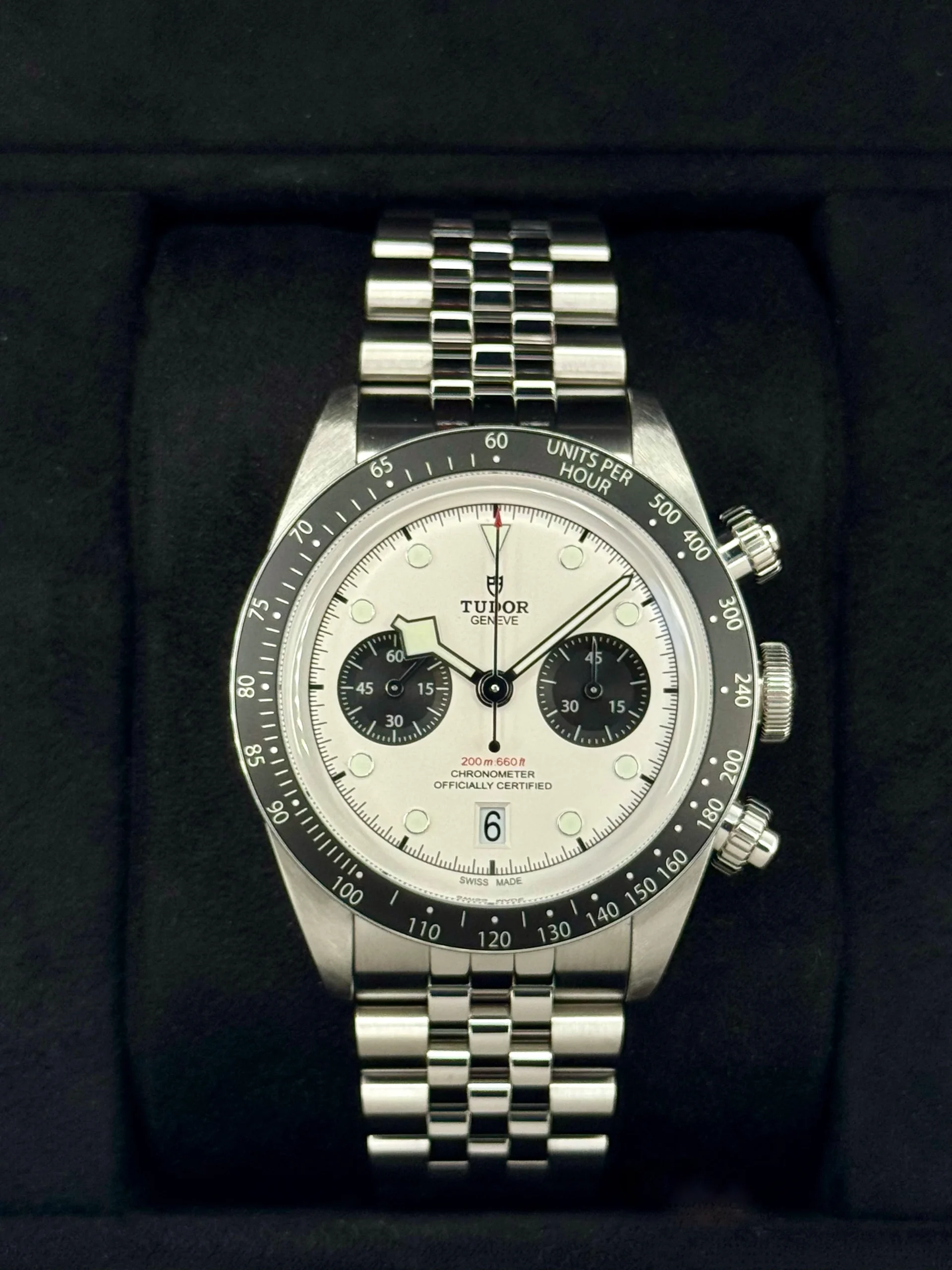 2024 Tudor Black Bay Chrono 41mm 79360N Stainless Steel Jubilee Bracelet Opaline with Black Counters Dial