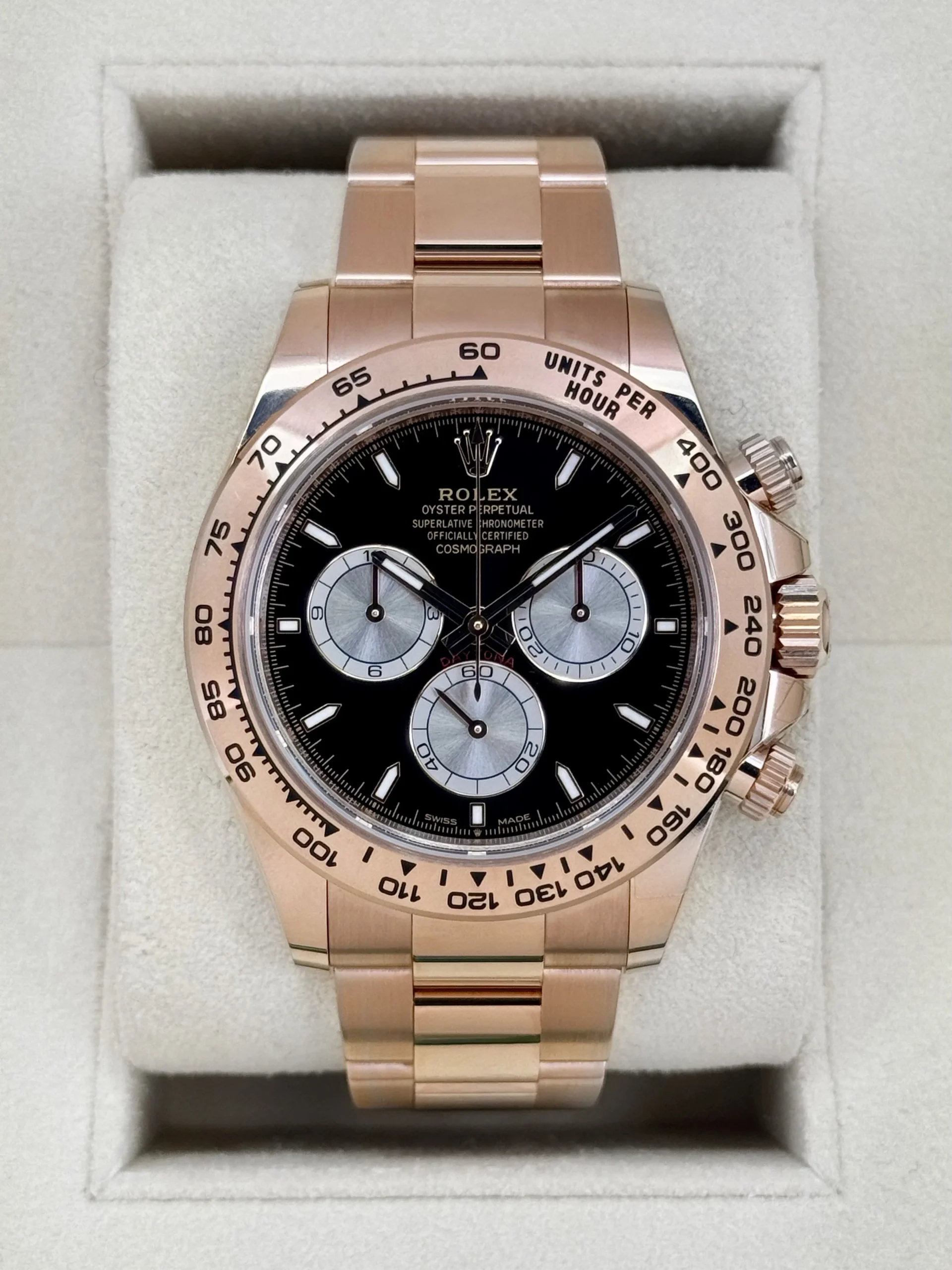 2025 Rolex Cosmograph Daytona 40mm 126505 18k Rose Gold Bright Black Dial Sundust Sub-Dials Oyster Bracelet