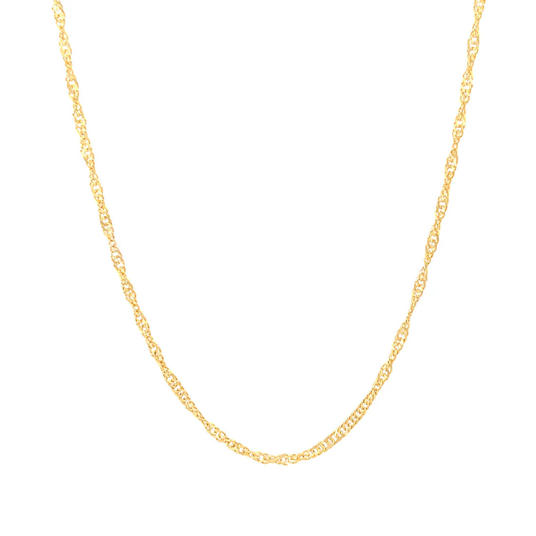 This fabulous 9kt Yellow Gold Singapore Necklace Chain features the tried and true Singapore link design at 40cm.