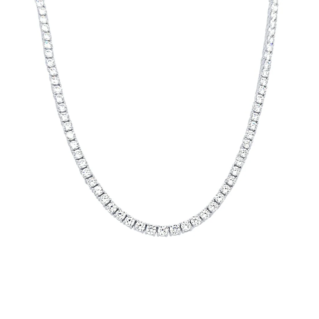 This lovely 41cm Tennis Claw Necklace with Cubic Zirconia in Sterling Silver features 3mm claw settings. Spaced evenly and regularly along the length of the band, a tennis style cubic zirconia necklace features symmetrical gemstones that are identical to each other in every way.