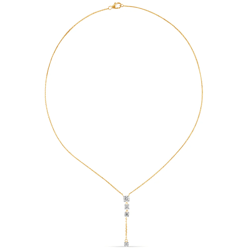 This Drop Lariat Necklace with 1.00ct total weight of Laboratory-Grown Diamonds in 9kt Yellow Gold features a stunning drop lariat design, with Laboratory-Grown diamonds throughout. Gracefully designed, our diamond necklaces drape the neckline in shimmering beauty, perfect for adding subtle sophistication.