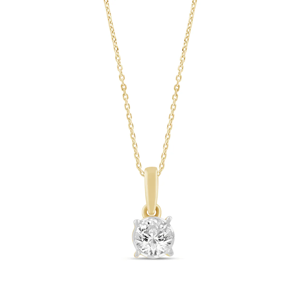 This stunning 46cm 0.15ct diamond solitaire miracle necklace in 9kt yellow gold is the perfect classic piece to add to your collection. Suspended from a 1mm rope chain, this necklace features a sleek 4mm by 9mm solitaire pendant, miracle set with a round brilliant diamond of HI colour and I2 clarity. Whether worn solo for a subtle statement or layered for added impact, this timeless solitaire pendant necklace adds an extra touch of sophistication to every look.