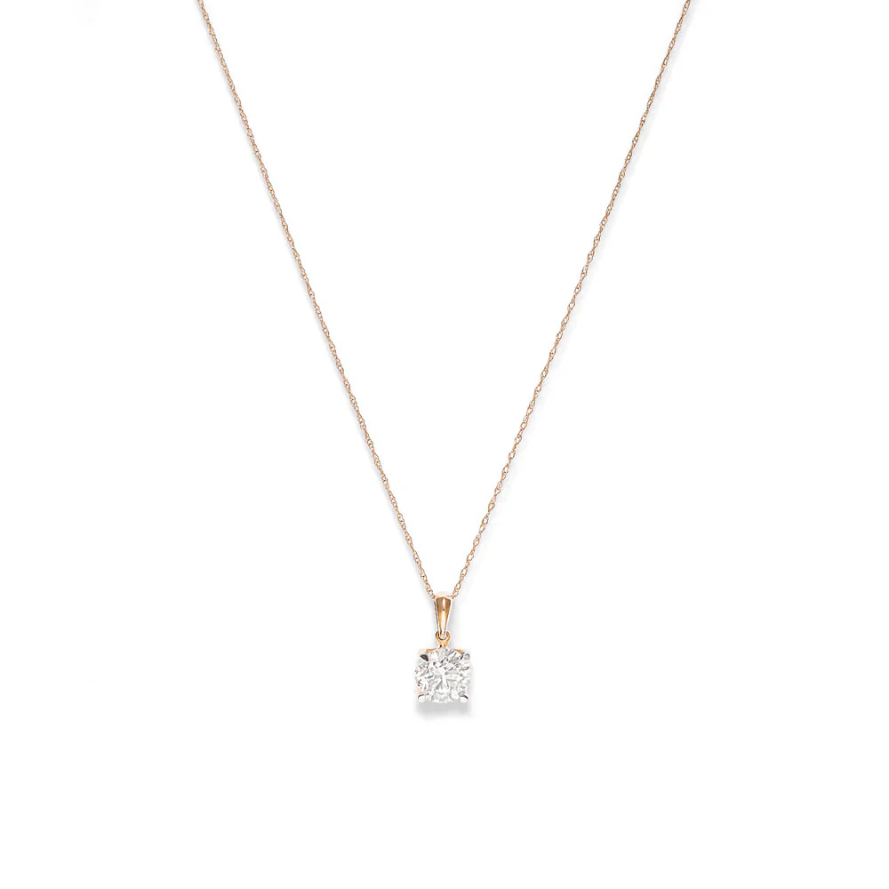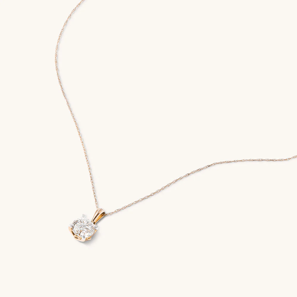 Exude modern elegance with this 1.50ct total weight laboratory-grown diamond solitaire necklace in 9kt yellow gold. Gracefully suspended from a 45cm 1mm rope chain, this necklace features a sparkling claw set round brilliant solitaire laboratory-grown diamond of F+ colour and VS1 clarity. Perfect for layering and wearing individually, this solitaire necklace is the perfect piece to elevate your everyday look.
