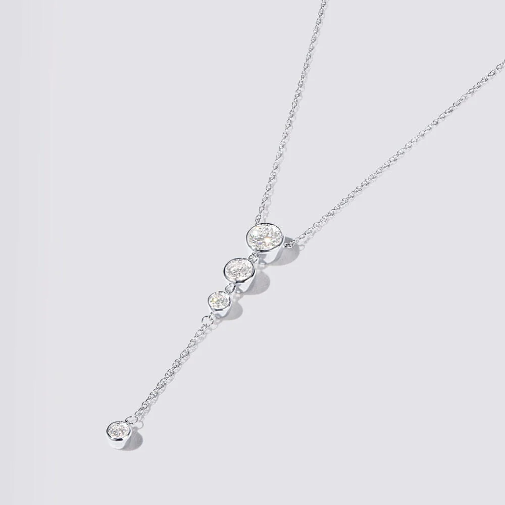 This is a gorgeous Bezel Set Lariat Necklace with 1.00ct total weight of Laboratory-Grown Diamonds in Sterling Silver and Platinum. Our lab-grown Meera diamonds have been specially created for maximum light refract total weightion and shine using our cutting-edge technology.