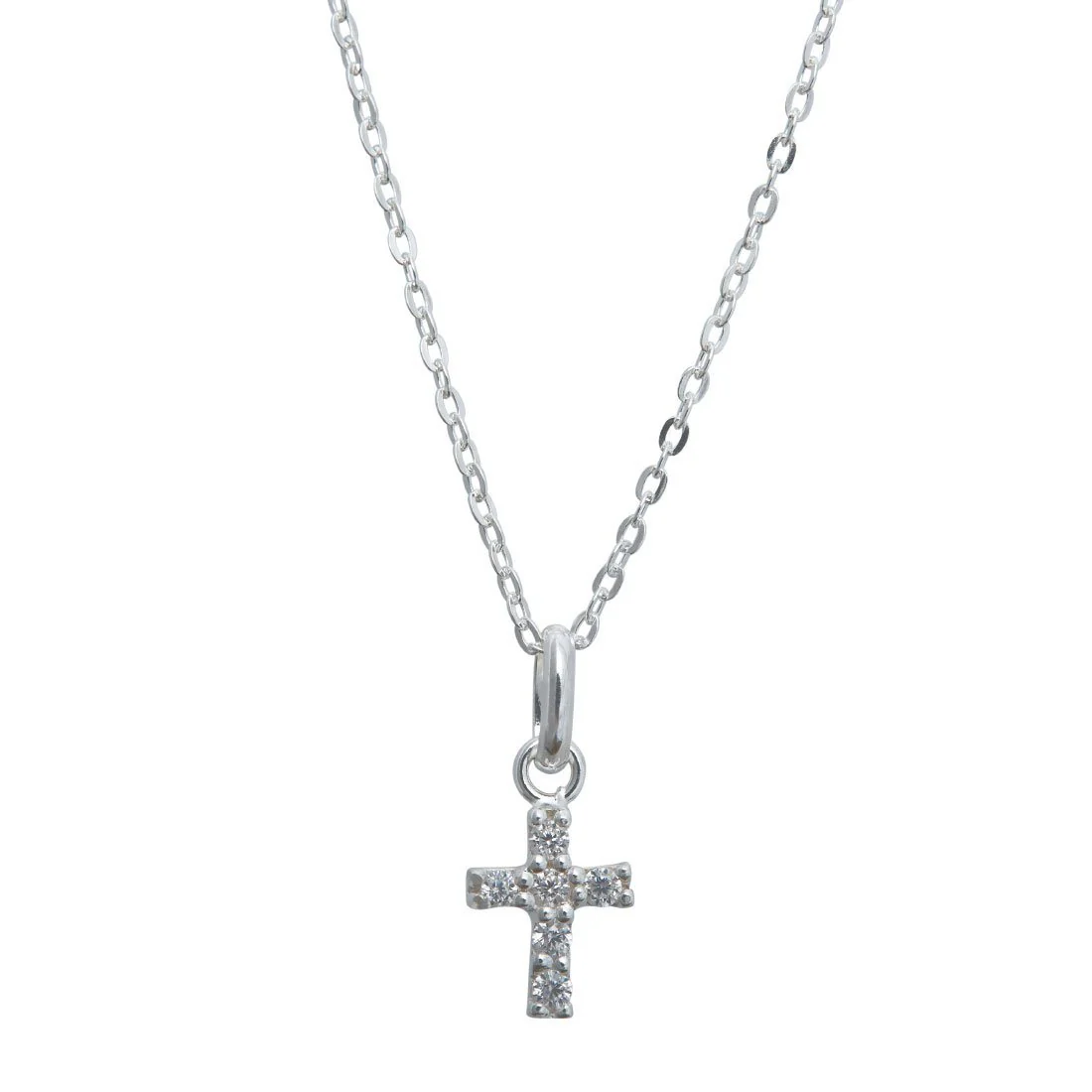 This gorgeous Sterling Silver Mini Cross Necklace is the perfect expression of your faith and style Featuring claw set Cubic Zirconias on a 45cm chain