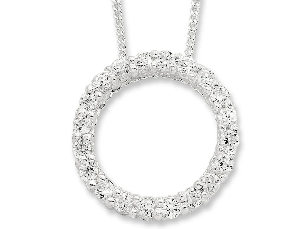 The open ring of this stunning sterling silver open circle necklace brims with celebrity style. Whether your day includes errands and shopping or a red carpet premiere this gorgeous necklace will make your outfit even more fabulous.