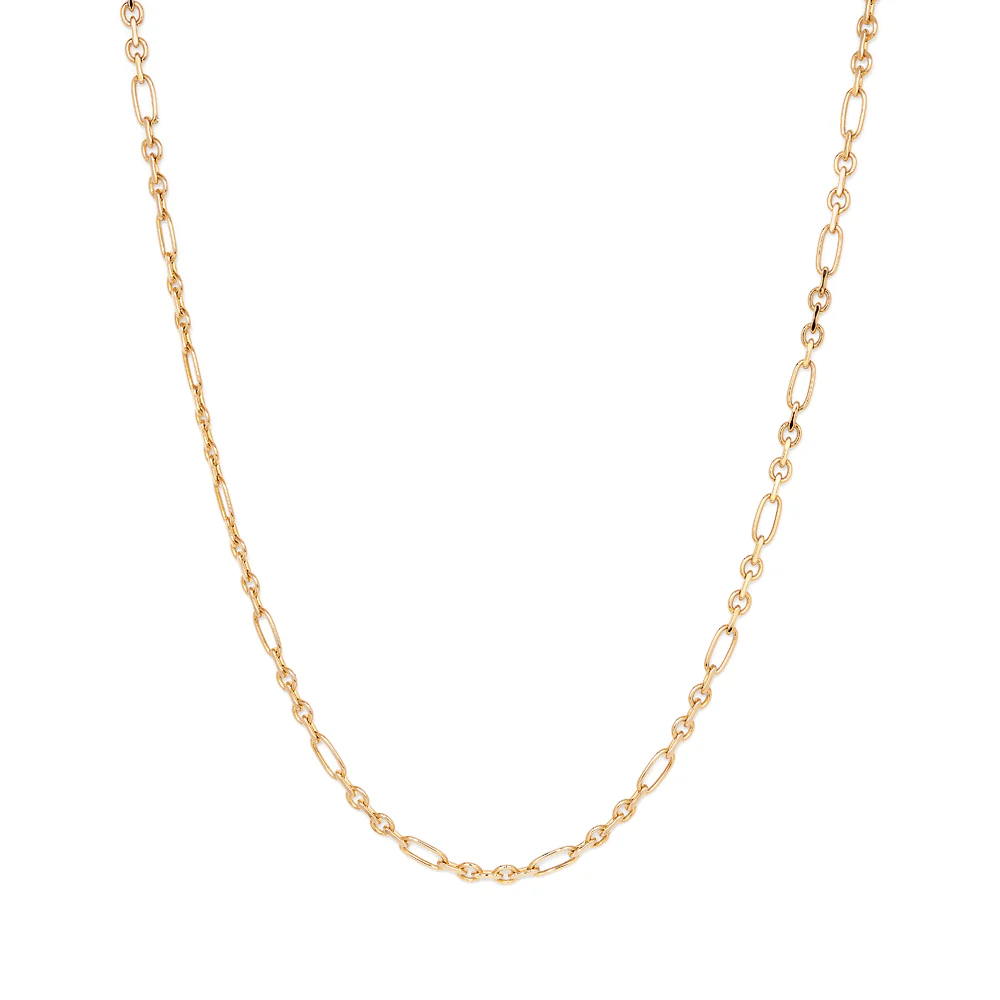 A sleek expression of classic style, the 45cm Flat Figaro Chain Necklace in 9kt Bonded Yellow Gold features the iconic Italian link design with alternating short and elongated links. Crafted with a polished finish and measuring approximately 5mm in width, this necklace offers a bold yet refined look. Its timeless silhouette makes it a versatile piece, perfect for layering or wearing solo as a statement of effortless elegance.