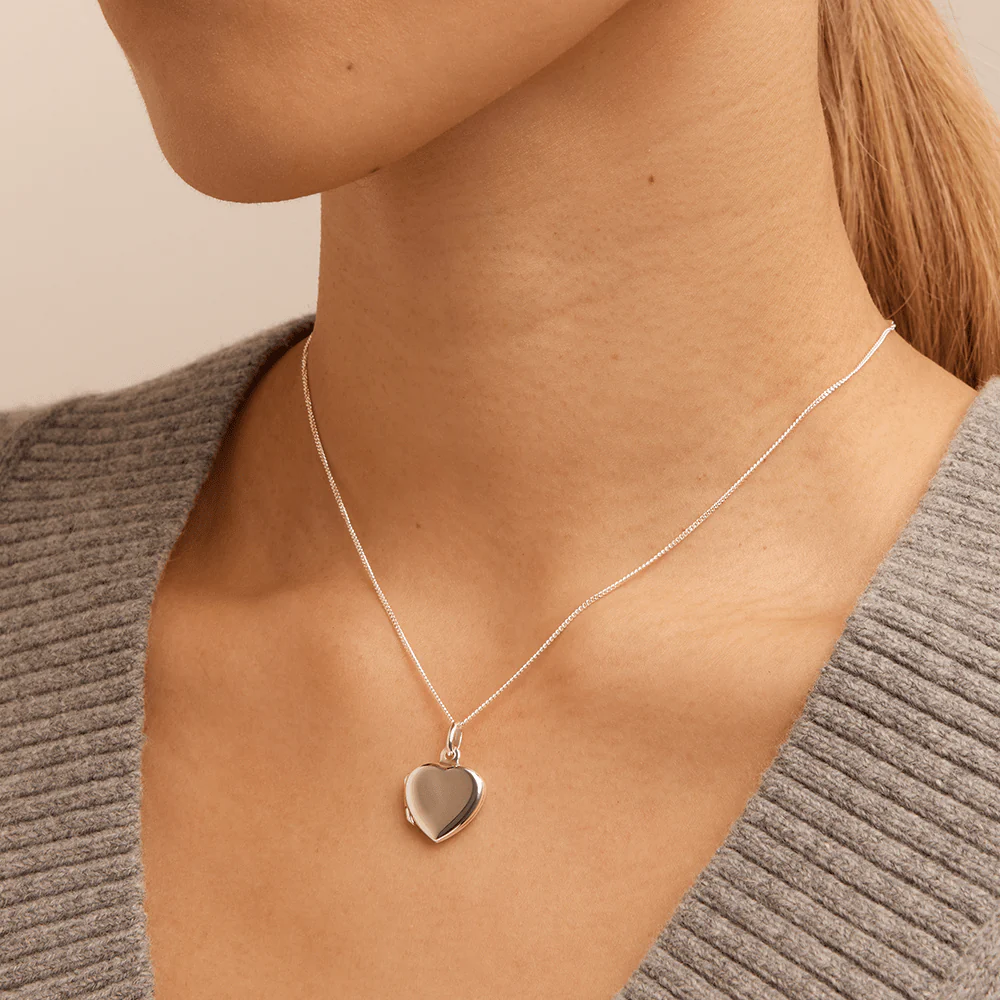 This timeless sentimental 45cm heart locket pendant necklace in sterling silver is the perfect addition to your jewellery collection. Suspended from a 1mm cable chain with an extendable length of 40cm to 45cm, this 15mm by 21mm heart shaped locket opens to hold cherished keepsakes or photos, making it a meaningful piece for everyday wear and layering. A beautiful gift or personal treasure, this heart locket necklace is a graceful expression of love and memory.
