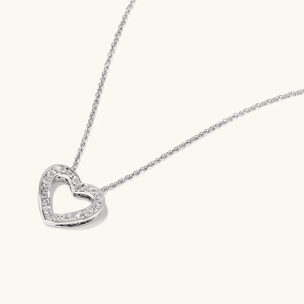 This 45cm heart pendant necklace showcases 0.25ct total weight of laboratory-grown diamonds, beautifully set in sterling silver and platinum to capture the essence of modern romance. Suspended from a 1mm rope chain, the 18mm heart shaped pendant features channel set round brilliant diamonds of GH colour and SI1–SI2 clarity. Whether gifted or a personal keepsake, this timeless necklace is destined to become an everyday favourite