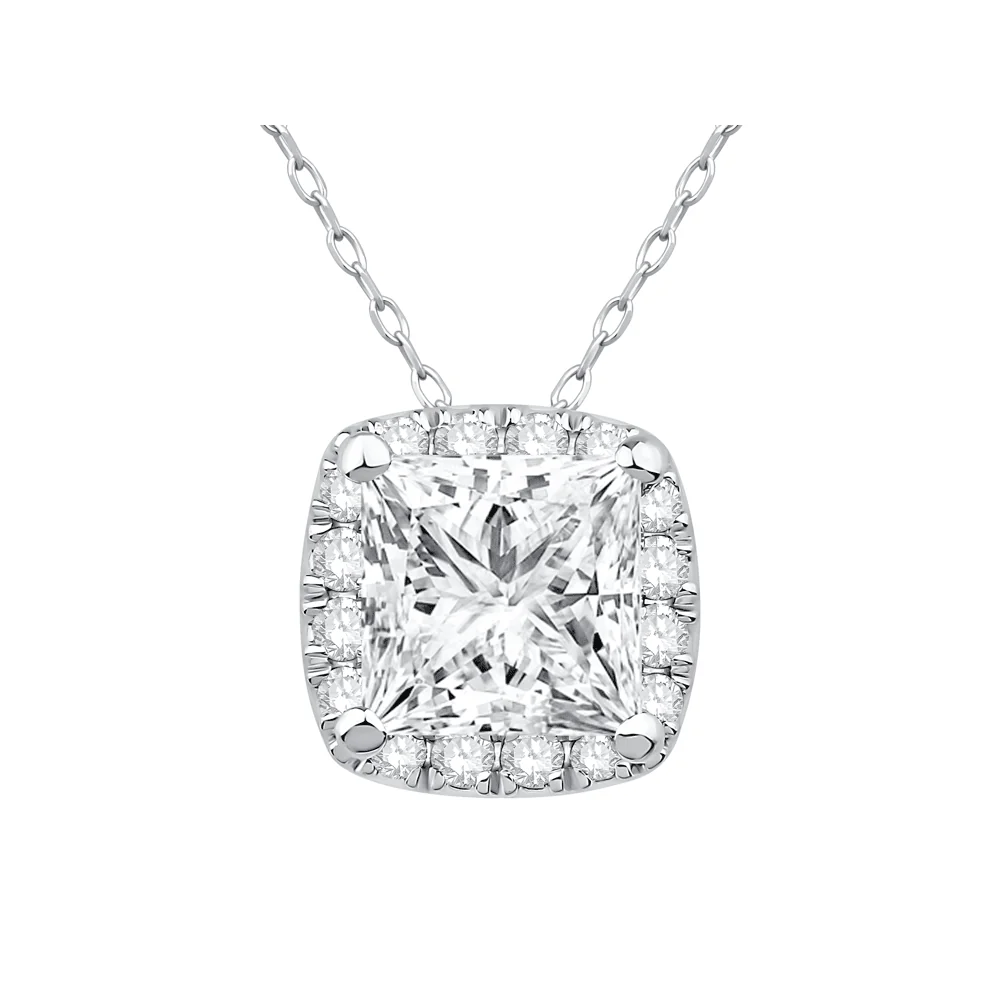 A glamorous take on timeless sophistication, this 45cm hidden halo necklace featuring 1.10ct total weight of laboratory-grown diamonds in 9kt white gold, is the perfect piece to elevate your style. Set on a 1mm rope chain, this necklace showcases a stunning 7mm hidden halo pendant, featuring a princess cut lab diamond centre stone surrounded by round brilliant laboratory-grown diamonds all of F colour and VS2 clarity. Whether styling as layering piece or wearing individually, this necklace is sure to complement your look perfectly. Perfect as a gifting piece or a personal keepsake, this halo necklace was designed to ensure timeless style.