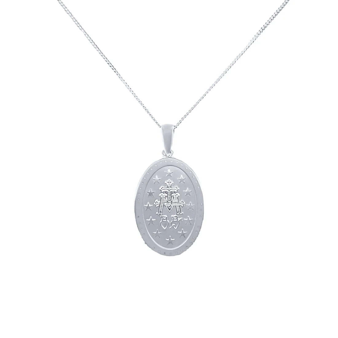This lovely 45cm Madonna – The Virgin Mary – Necklace with Cubic Zirconia in Sterling Silver features a 21mmx16.80mm pendant and a 5cm extender.