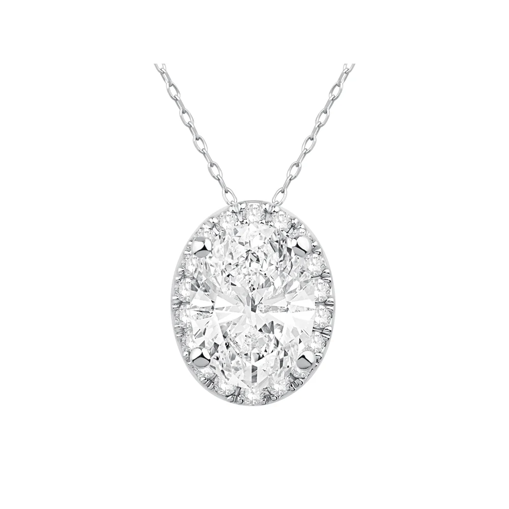 A glamorous take on timeless sophistication, this 45cm oval hidden halo necklace featuring 1.10ct total weight of laboratory-grown diamonds in 9kt white gold, is the perfect piece to elevate your style. Set on a 1mm rope chain, this necklace showcases a stunning 8mm by 10mm hidden halo pendant, featuring an oval cut lab diamond centre stone surrounded by round brilliant laboratory-grown diamonds all of F colour and VS2 clarity. Whether styling as layering piece or wearing individually, this necklace is sure to complement your look perfectly. Perfect as a gifting piece or a personal keepsake, this halo necklace was designed to ensure timeless style.