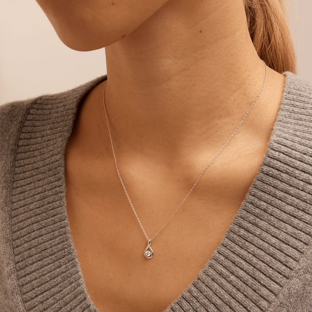 Modern meets classic style with this dainty solitaire swirl pendant, featuring 0.16ct total weight of laboratory-grown diamonds in sterling silver and rhodium plating. Placed on a 1.5mm 45cm rope chain, the round brilliant laboratory-grown diamond of F colour and VS1 clarity is claw set within an ethereal swirl design, measuring the pendant at 6.3mm by 12.9mm. Whether styling as a layering piece or wearing individually, this necklace is sure to become a staple part of your look.