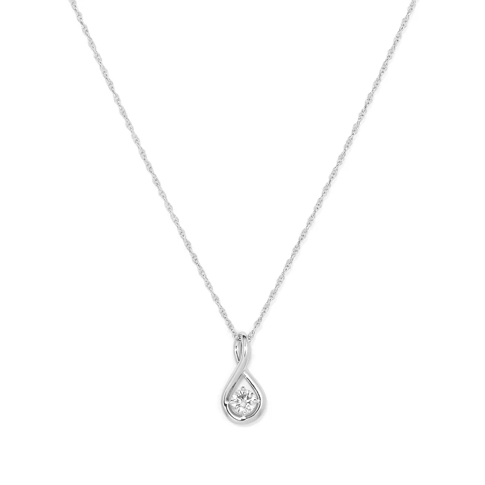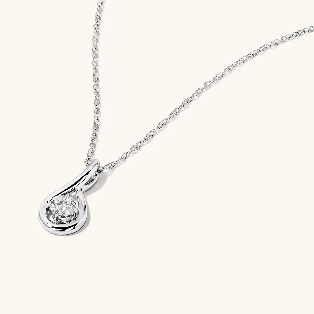 45cm Solitaire Swirl Pendant Necklace with 0.16tw of Laboratory-Grown Diamonds in Sterling Silver with Rhodium Plating