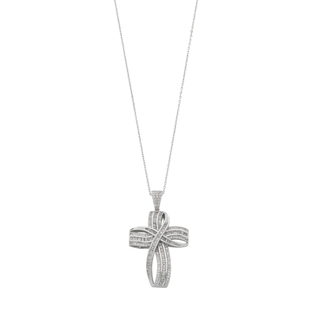 For a meaningful piece that makes a statement, this Sterling Silver Necklace is a keeper. This piece features Cubic Zirconia in a stunning large cross design.