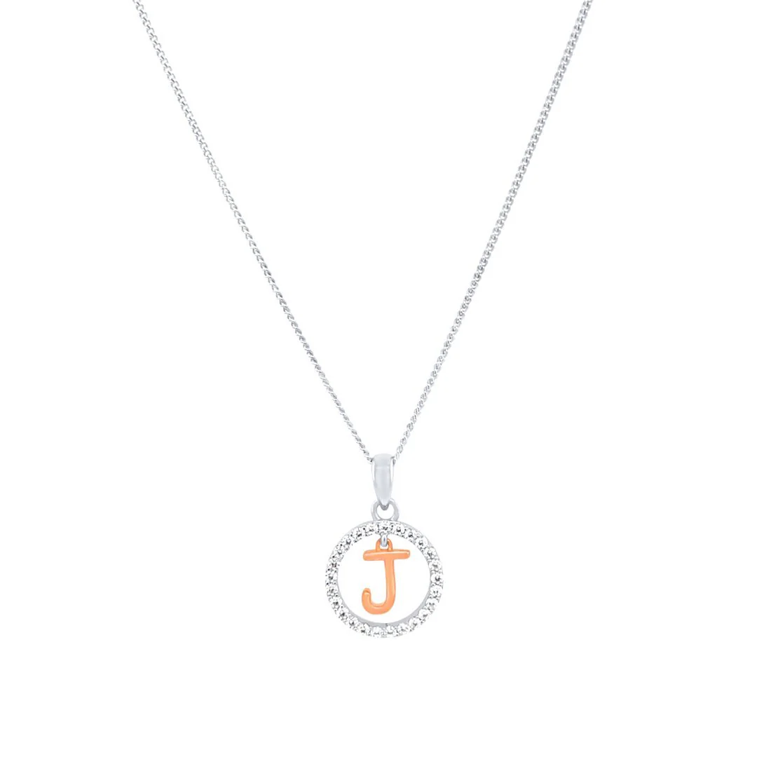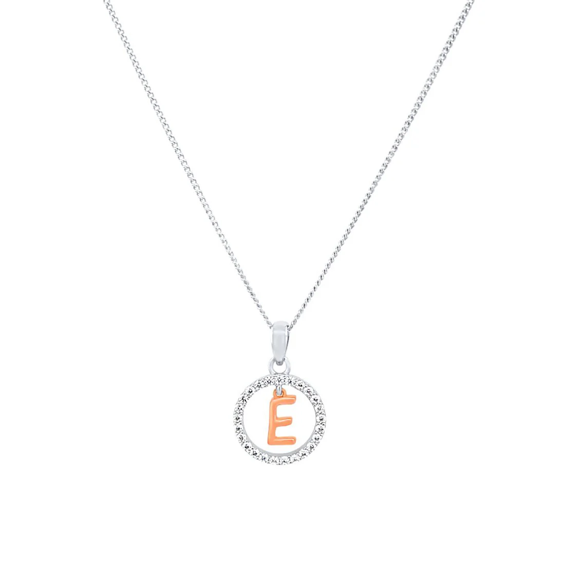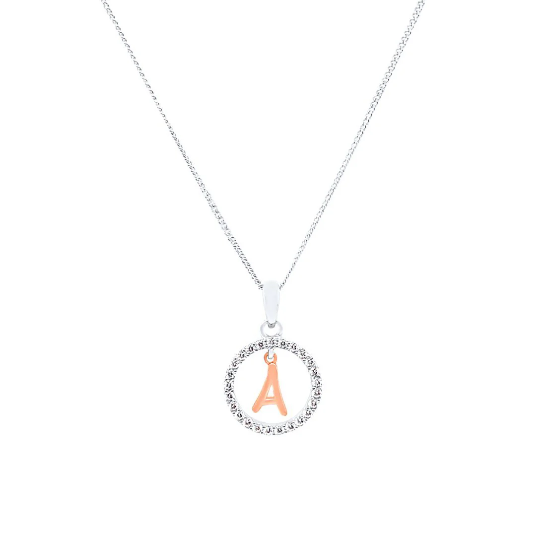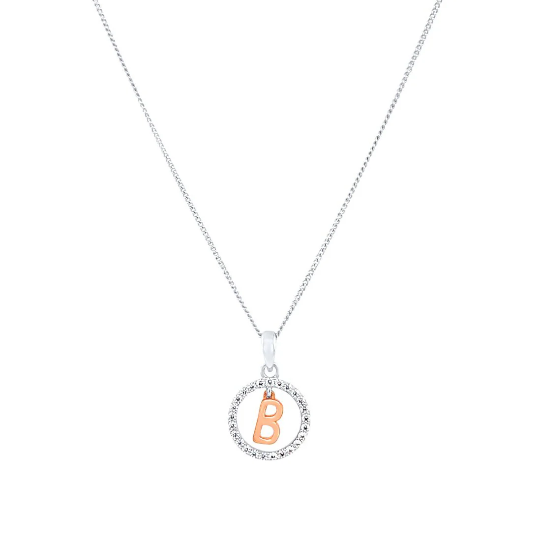 This Pendant Necklace features a beautiful open circle initial pendant, with cubic zirconias and a rose plated initial of your choice, on a 45cm chain,