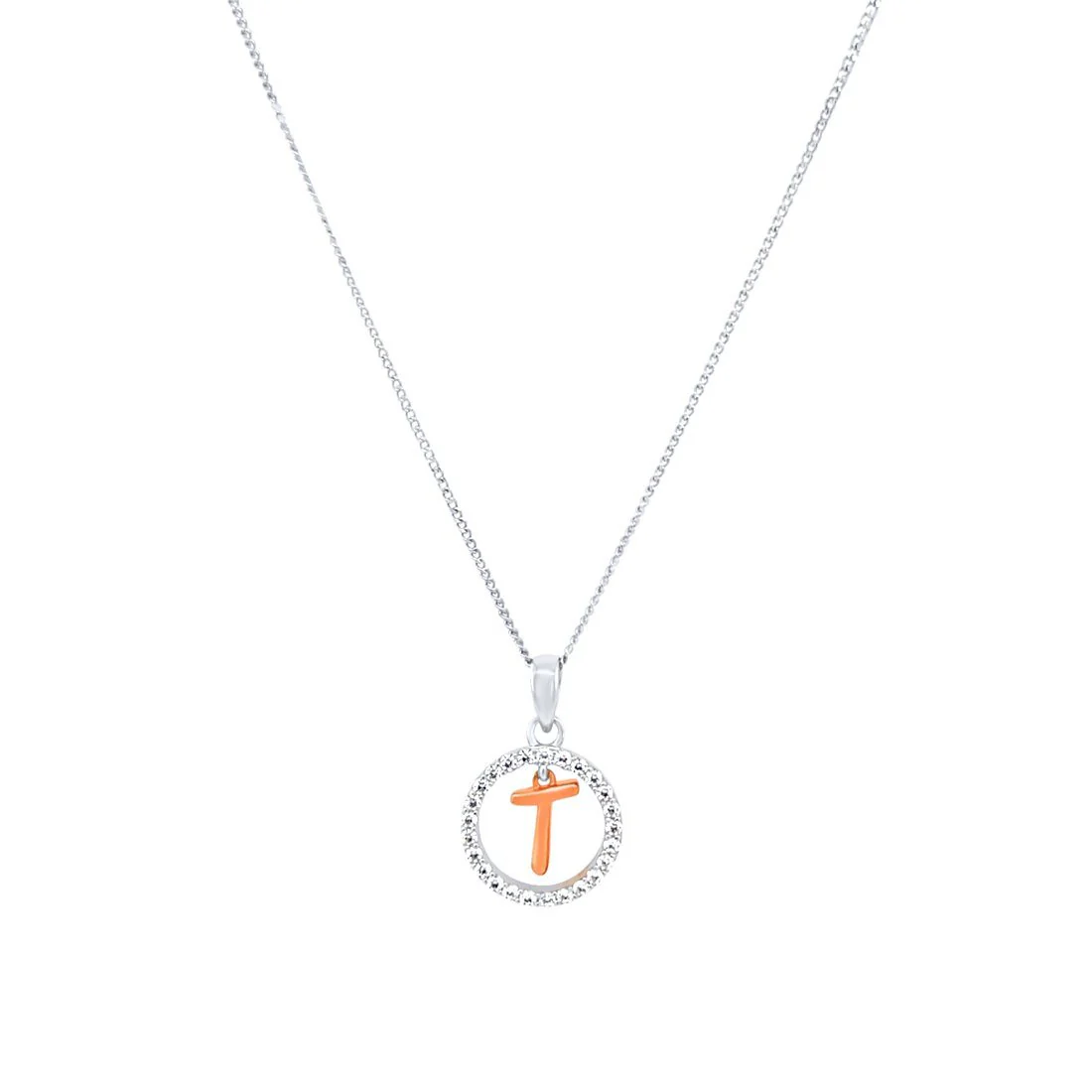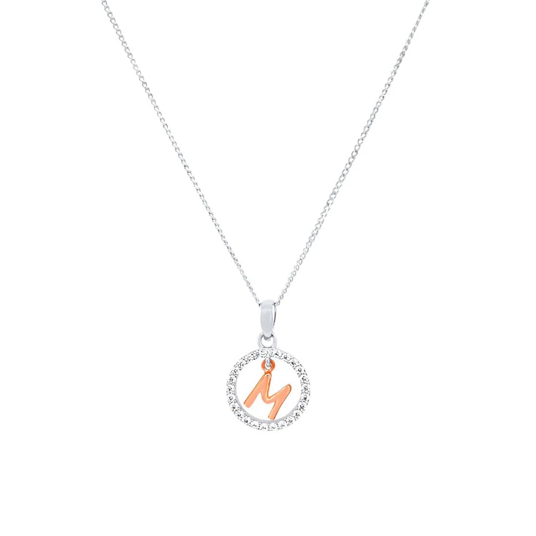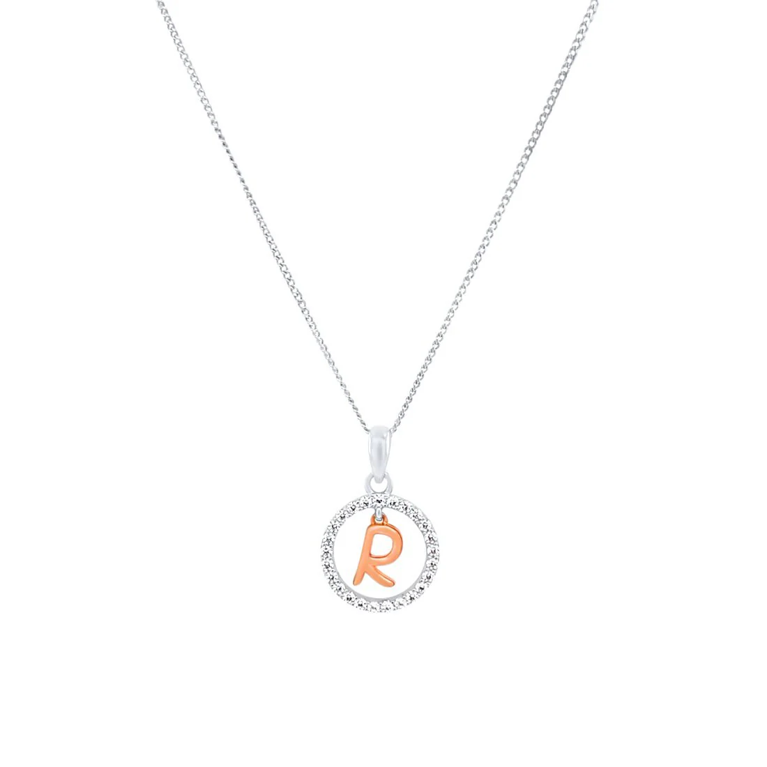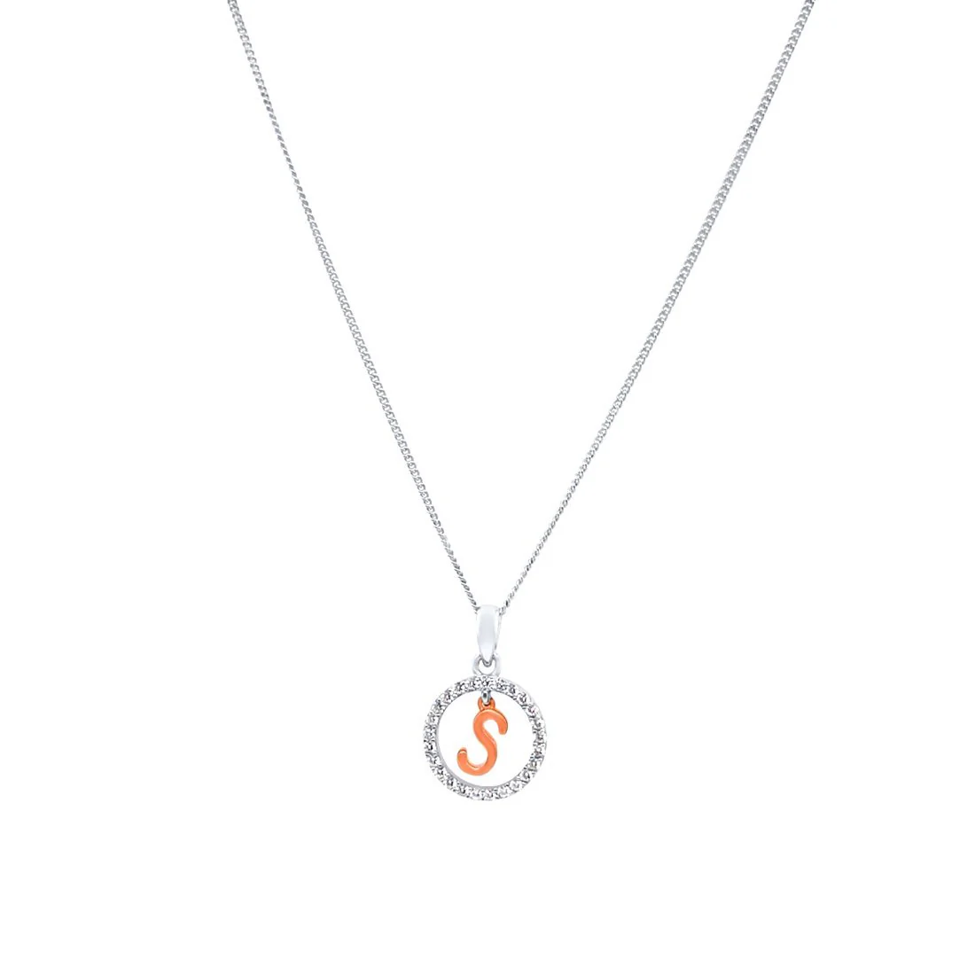 This Pendant Necklace features a beautiful open circle initial pendant, with cubic zirconias and a rose plated initial of your choice, on a 45cm chain,