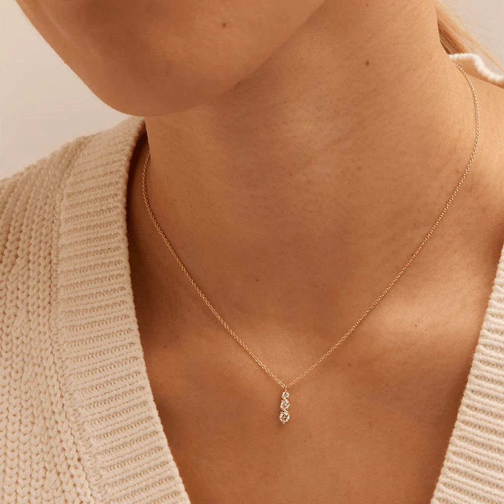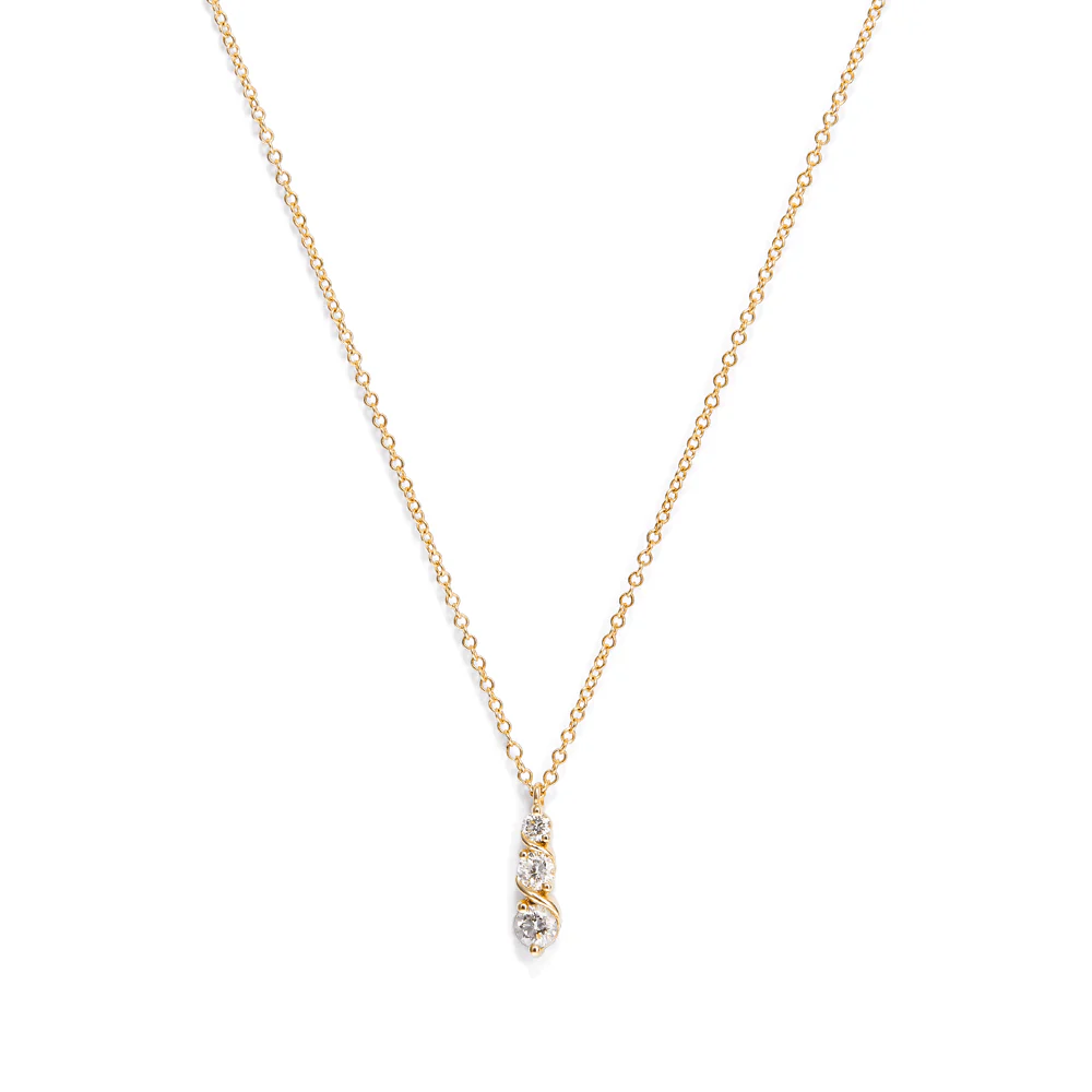 Maximise your look with this elegant 45cm three stone swirl necklace. featuring 0.23ct total weight of laboratory-grown diamonds in 9kt yellow gold, this necklace showcases a dainty swirl design that flows around three round brilliant cut lab diamonds of G+ colour and SI2 clarity. Where modern style meets timeless elegance, this swirl will add a refined touch of brilliance to your neckline.