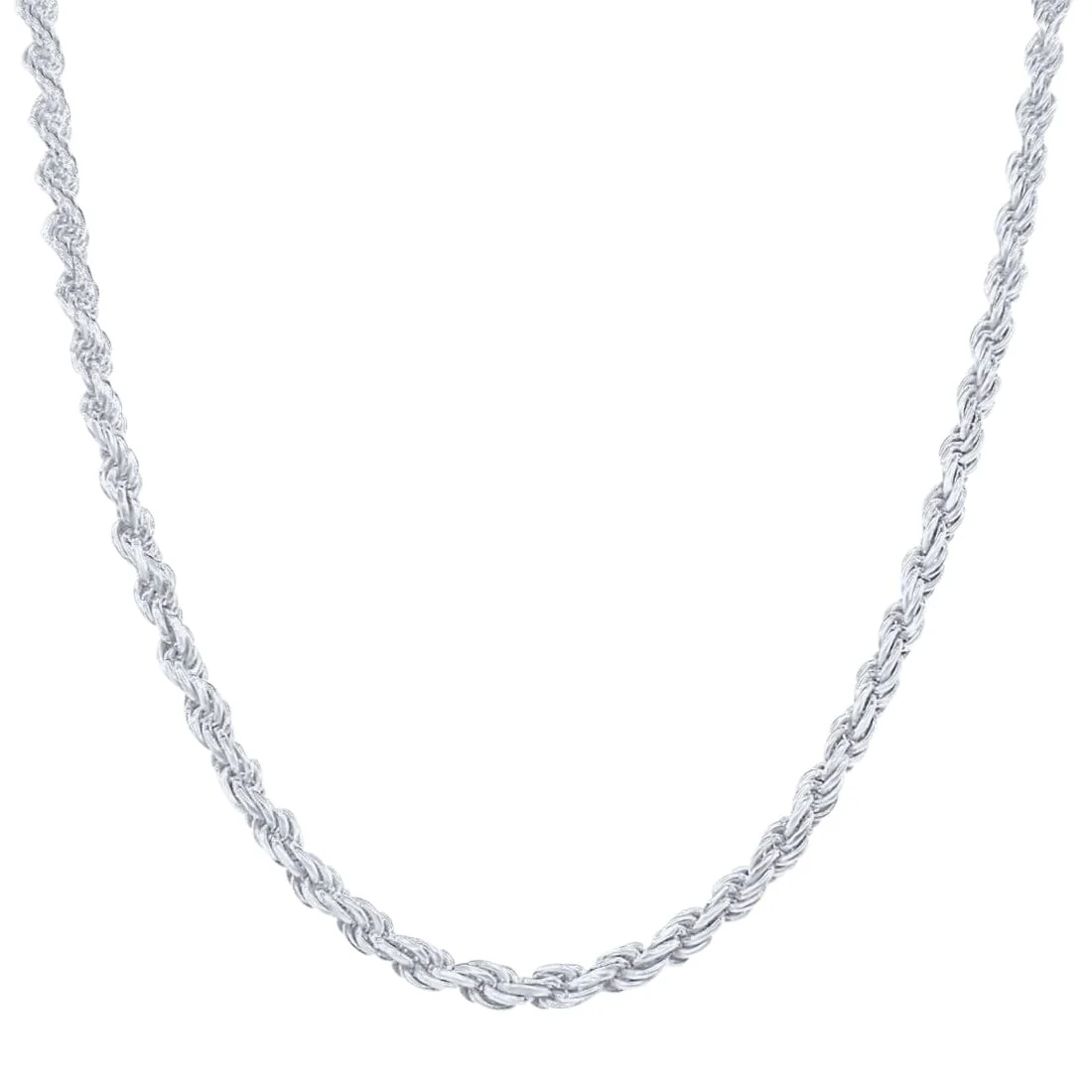 This lovely Sterling Silver Rope Chain Necklace is 50cm long and the links are 2mm wide. A sterling silver necklace can be worn stylishly with gold or titanium jewellery, thanks to its cool, subtle colour and beautiful shine.