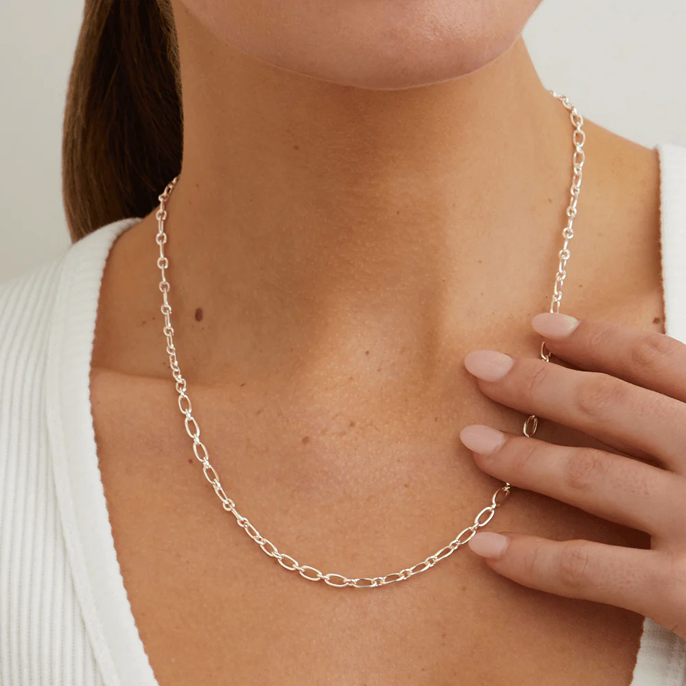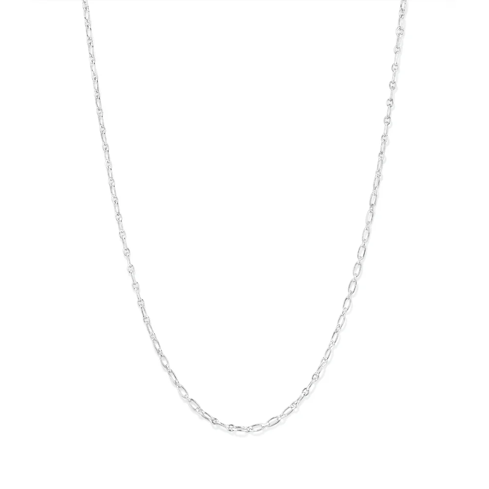 Emulate timeless sophistication with this 50cm 3mm width figaro paperclip chain in sterling silver. This chain has an extendable length from 45cm to 50cm, and features dainty 3mm paperclip figaro links, making it the perfect piece for everyday wear. Whether styling as a layering piece, adding pendants, or wearing individually, this paperclip figaro chain is bound to become an everyday staple.
