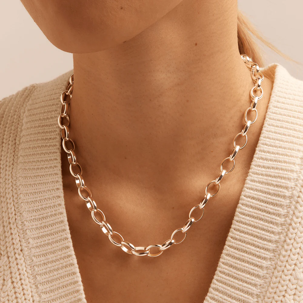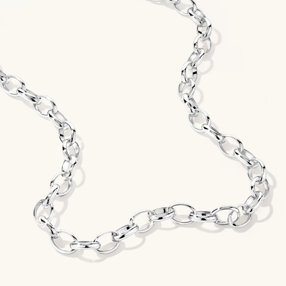 The 50cm 7.5mm Width Oval Belcher Chain in Sterling Silver features bold oval-shaped links with a bright, polished finish. This statement piece offers a strong and stylish silhouette. Crafted in luminous sterling silver, it’s a versatile chain perfect for layering or wearing solo, making it a standout addition to any jewellery collection and a thoughtful gift for those who love timeless design with a modern edge.