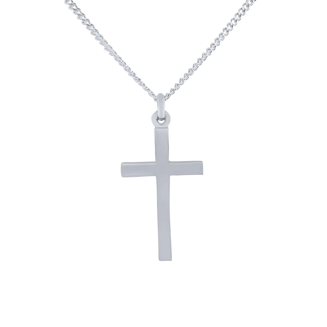 This stylish 50cm Flat Cross Necklace in Sterling Silver features a 5cm extender. It is the perfect statement of your beliefs. The perfect gift for any special occasion