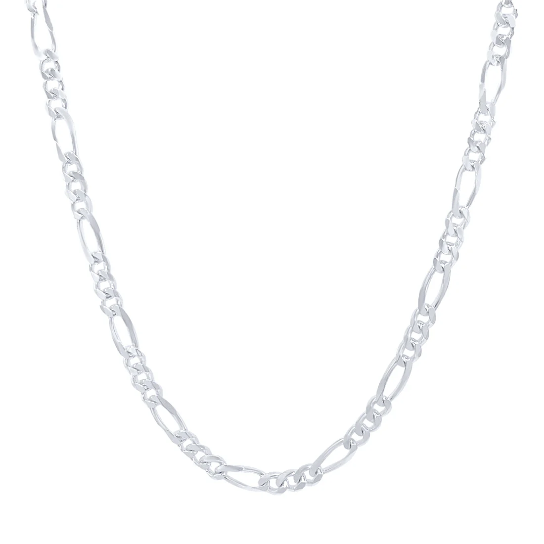 A simple, staple piece, this Sterling Silver Figaro Chain is understated perfection. With a high shine look this, 55cm chain is 4.1mm wide, and weighs approx. 120g. It’s perfect to wear on its own or for layering with other jewellery.