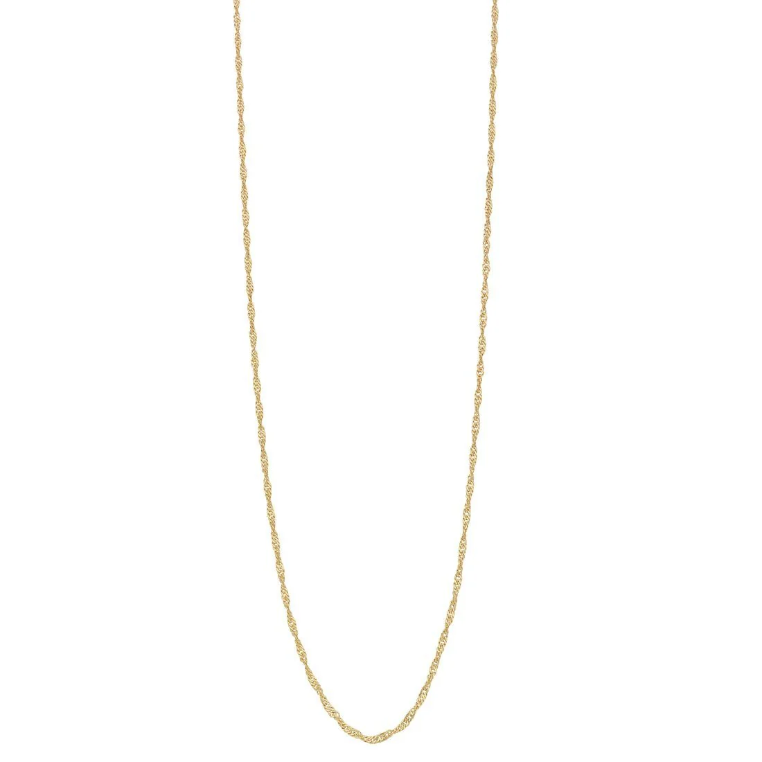 A staple to be worn everyday, this fantastic 55cm 9kt Yellow Gold necklace is absolutely fabulous. With a luscious Singapore Twist design, this piece can be worn by itself or with a lovely pendant. Make it your own today at Bevilles.