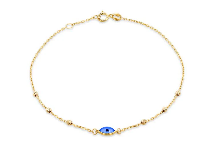 Crafted in radiant 9K yellow gold, this Evil Eye Dc Ball Bracelet brings together the elegance of fine materials with the symbolic protection of a timeless motif. At 19cm in length, it offers a comfortable and graceful fit, making it a standout piece in the gold bracelet category. The delicate gold balls and intricately designed evil eye charm reflect expert craftsmanship and attention to detail, suited for those who appreciate designer jewelry with subtle spiritual meaning. Whether worn alone or layered with matching gold pieces, this luxury bracelet adds a modern yet classic touch to any refined jewelry collection.