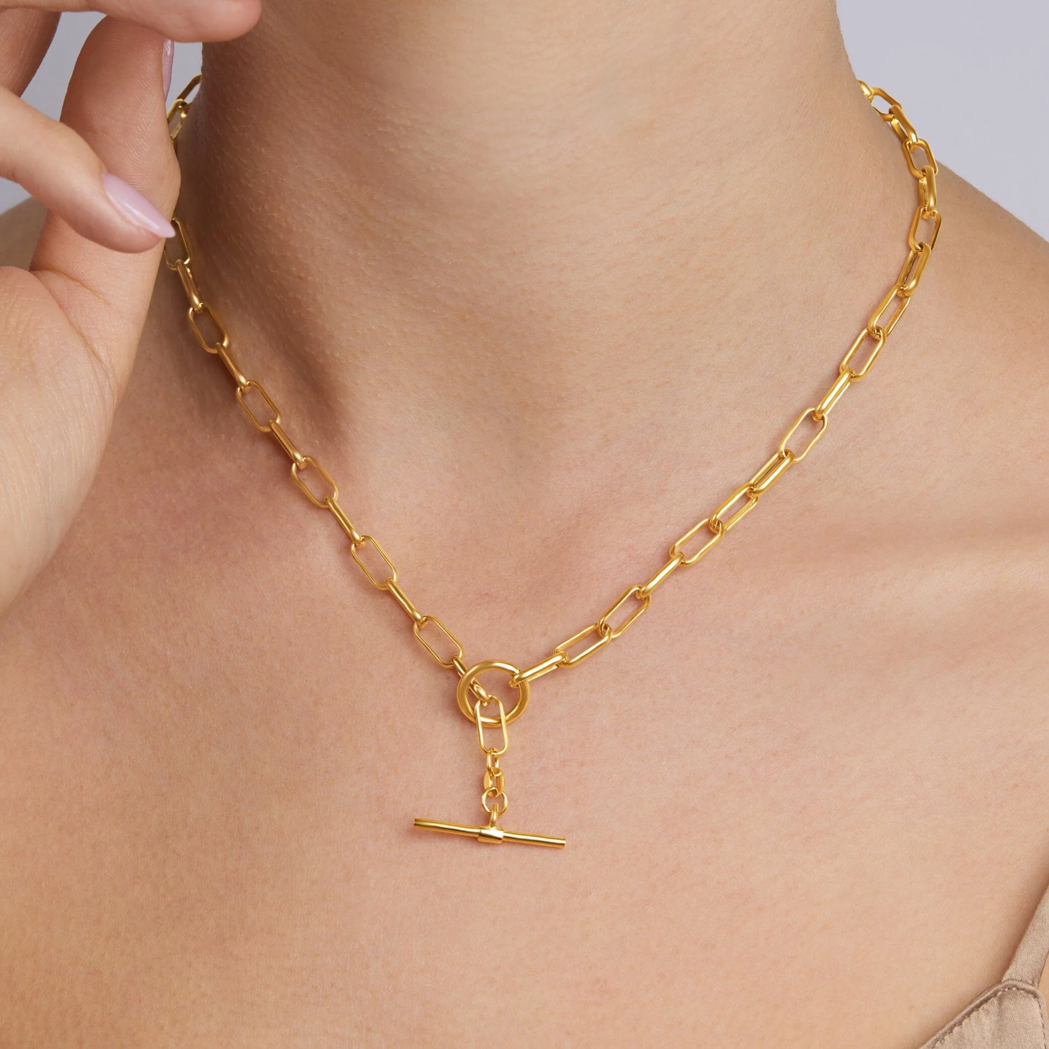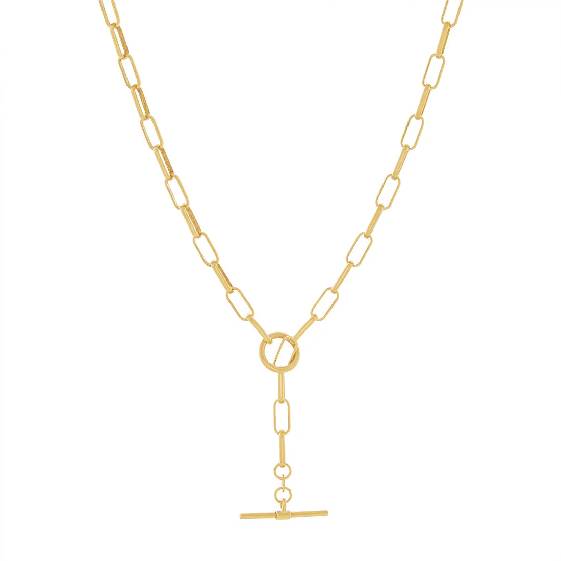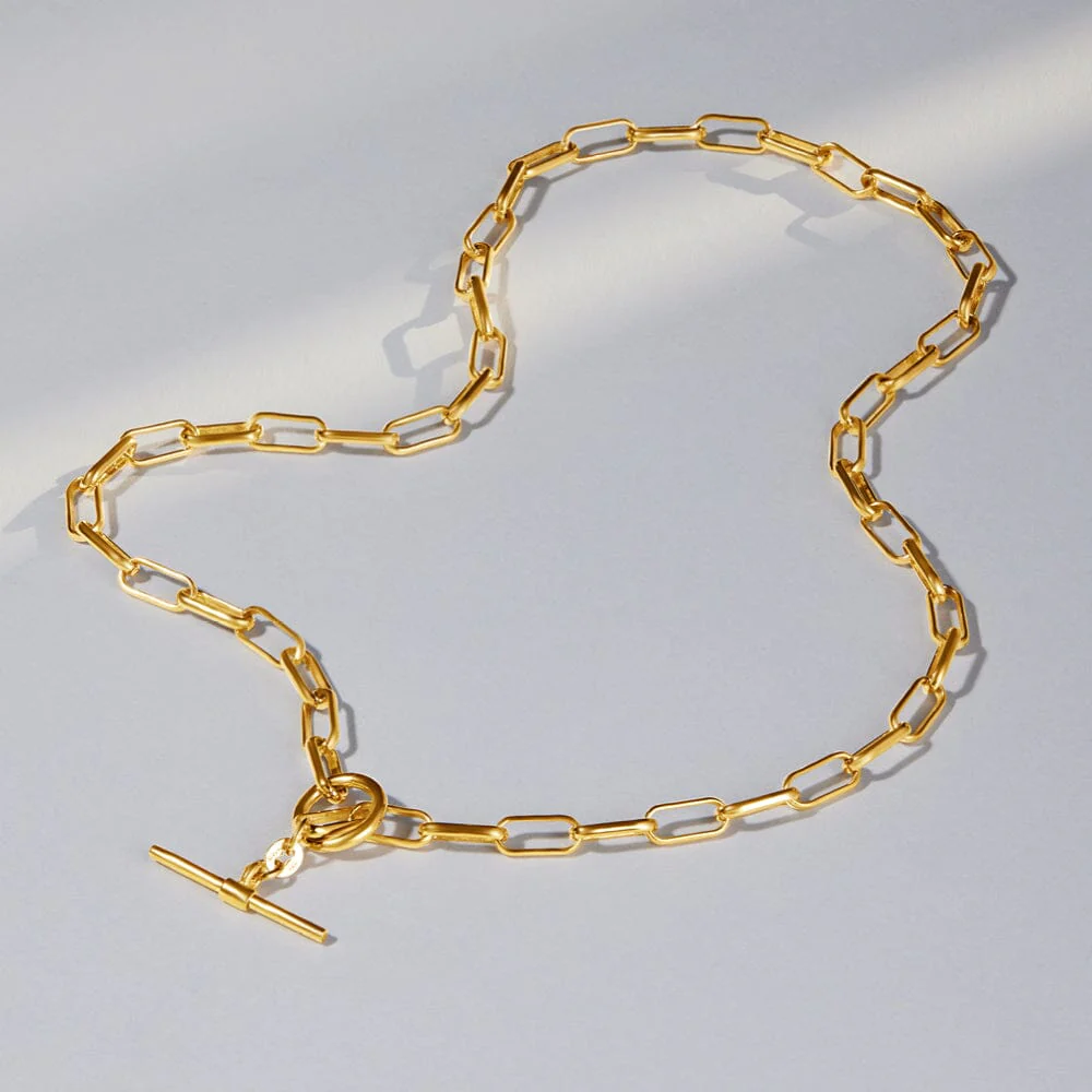 This fabulous 9kt Yellow Gold Silver Infused Fob Necklace features a paperclip design.