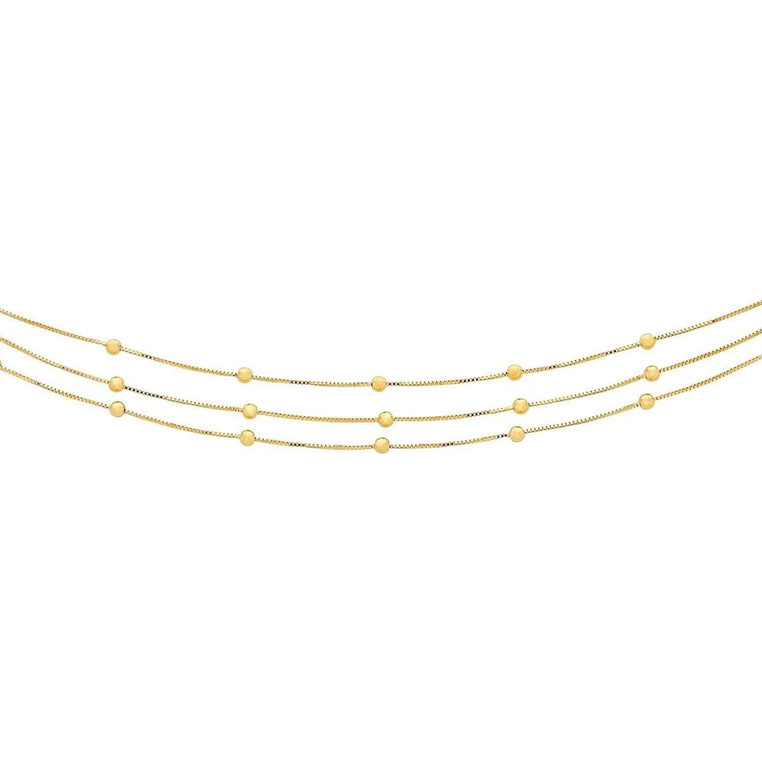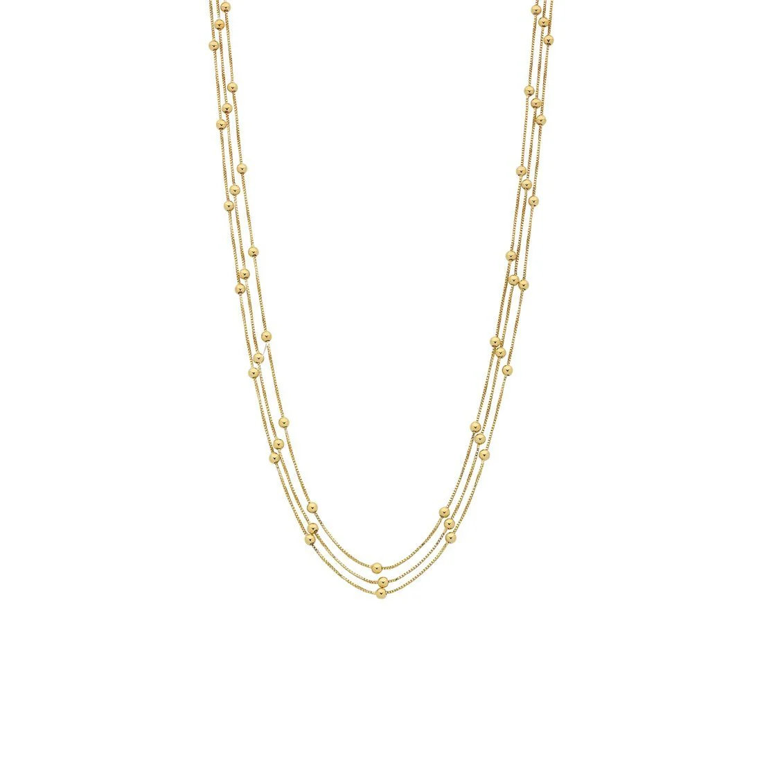 Accessorise your look with this magnificent 9kt Yellow Gold Silver Infused Necklace. Being chic with 3 rows of beaded ball chains, you can feel confident knowing that your look is on trend.
