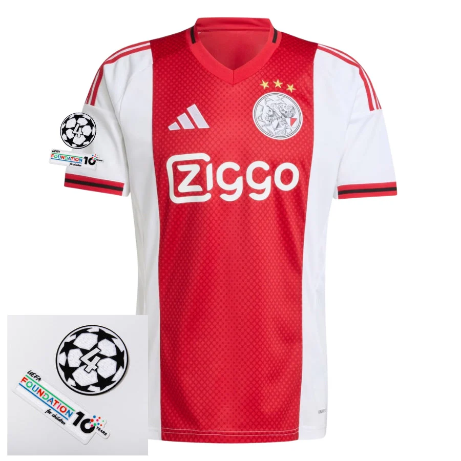 Ajax Amsterdam Home Fan Jersey 2025/26 Patches UCL + 10th Anniversary UEFA Foundation quantity