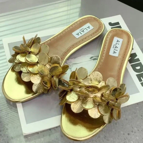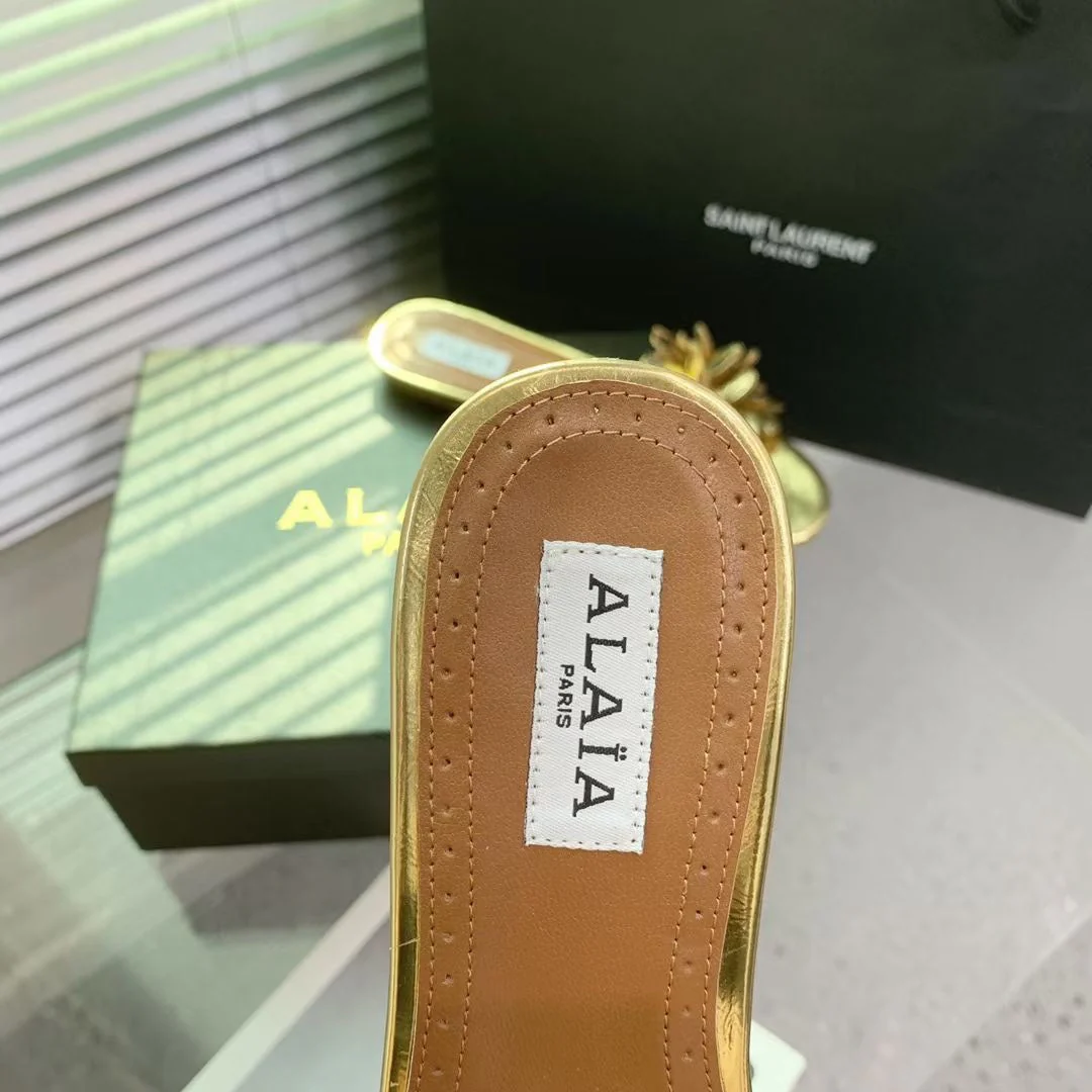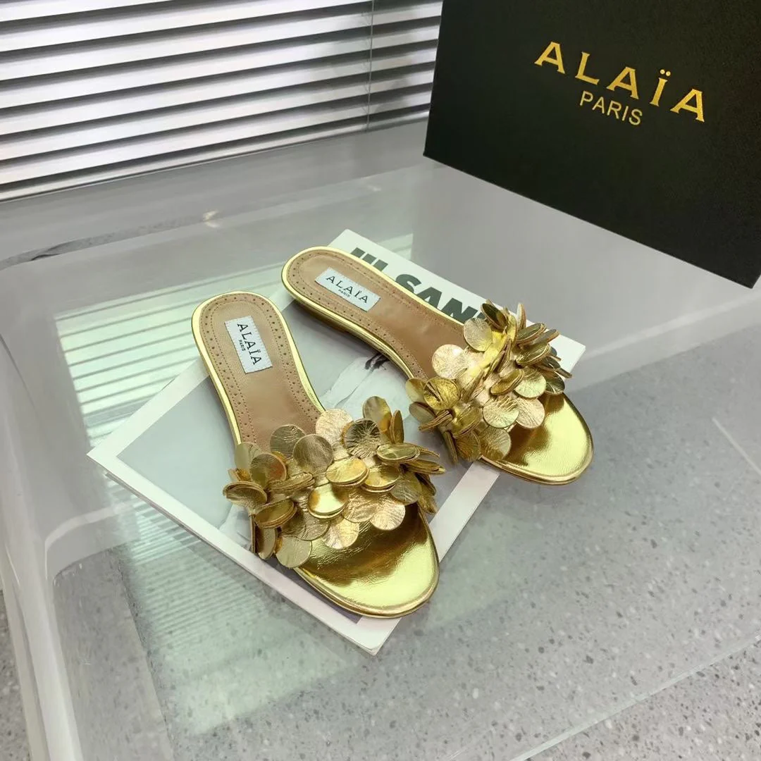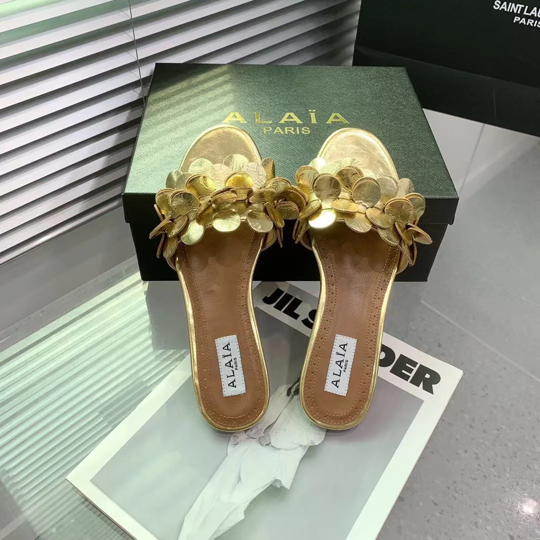 Alaia 25 Flower Slippers Gold Sheepskin 293162