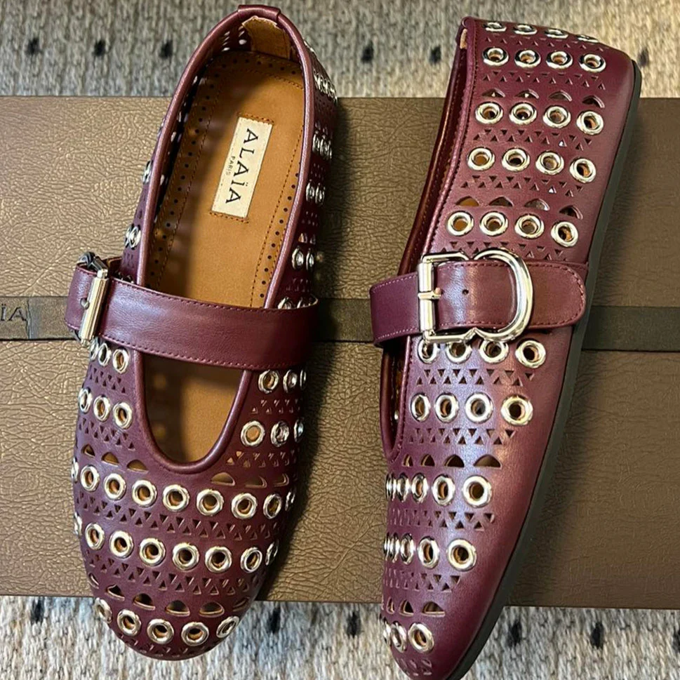 Alaia 25 Vienne With Eyelets Ballet Flats Garnet red Lambskin 303719